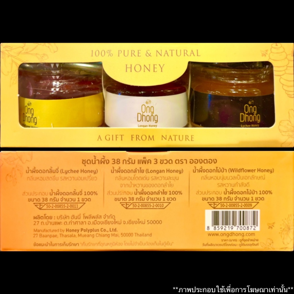 น้ำผึ้ง Ong Dhong 100% Pure & Natural Honey น้ำผึ้ง ดอกลิ้นจี่ , ดอกลำใย , ดอกไม้ป่า ขนาดพกพา