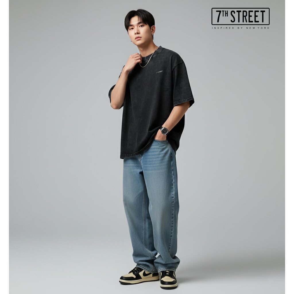 7th Street Oversize Vintage (โลโก้เหล็ก) ผ้าCotton Comb ฟอกซีดสไตล์วินเทจ ฟอกแบบตัวต่อตัวขึ้นริ้วตามตะเข็บฟอกจากเสื้อ...
