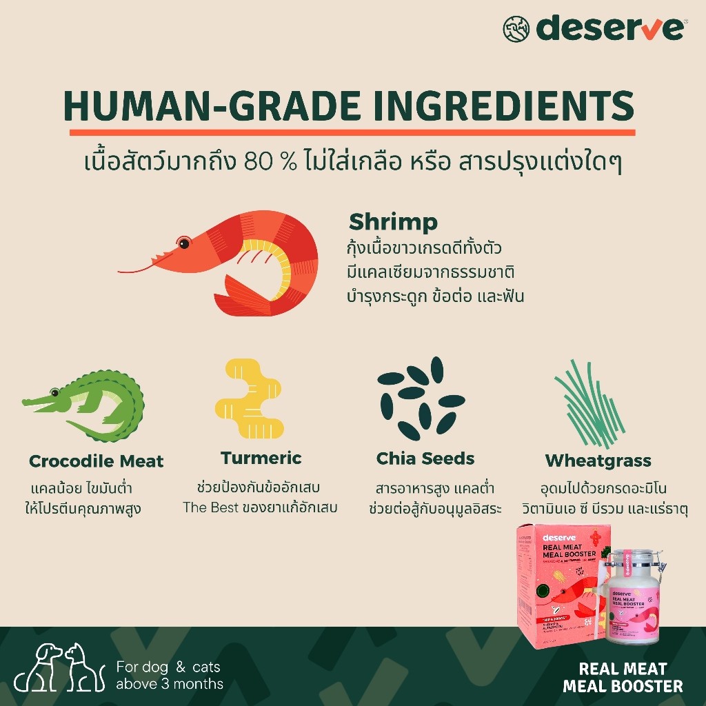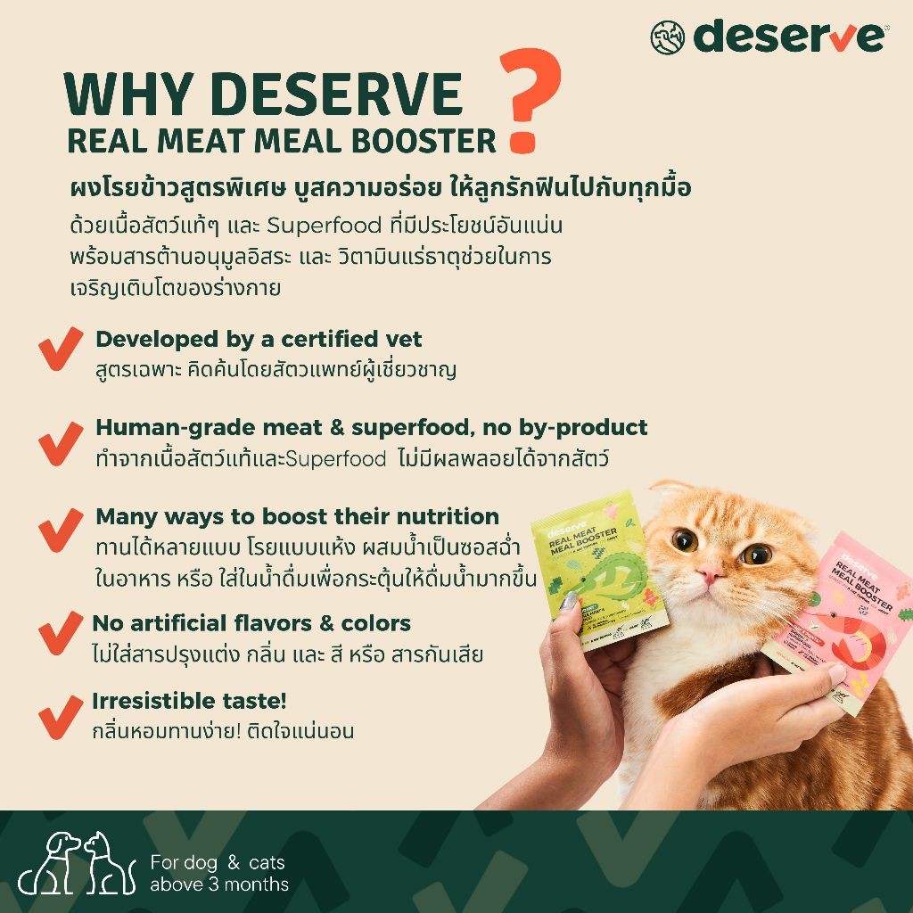 (1 ซอง) DESERVE ผงโรยอาหาร เพิ่มความอร่อย ผสม Superfood สำหรับสุนัขและแมว 3 เดือนขึ้นไป ขนาด 5g