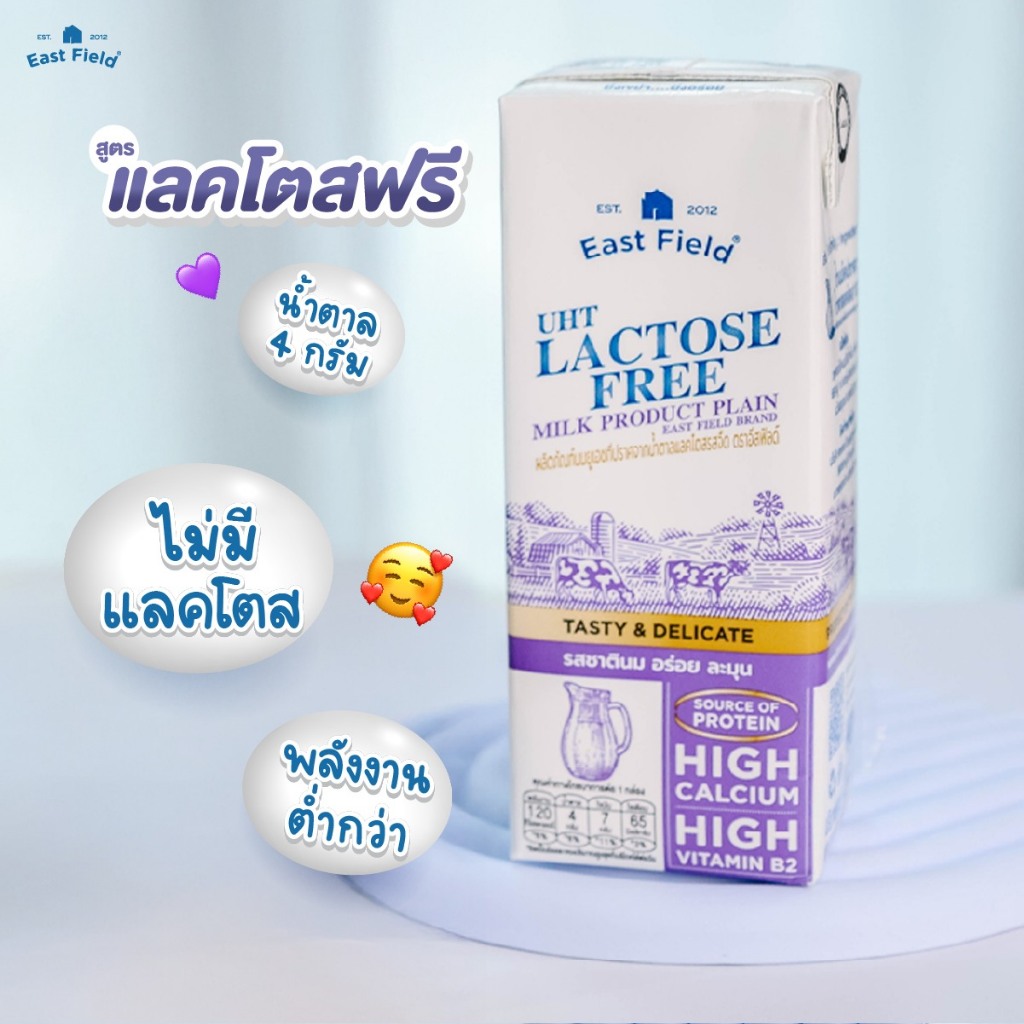 (1 ลัง 36 กล่อง) EAST FIELD UHT LACTOSE FREE นมอีสฟิลด์ นมโคแท้ สูตรแลคโตสฟรี ปราศจากน้ำตาลแลคโตส 180 ml