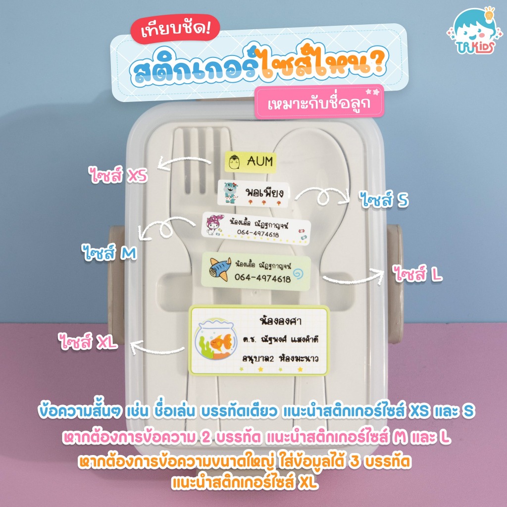 สติกเกอร์ชื่อกันน้ำ🇹🇭ร้านส่งเร็ว TRKIDS ติดเครื่องเขียน พร้อมลอกติด สติ๊กเกอร์ สติ๊กเกอร์พิมพ์ชื่อ 💋