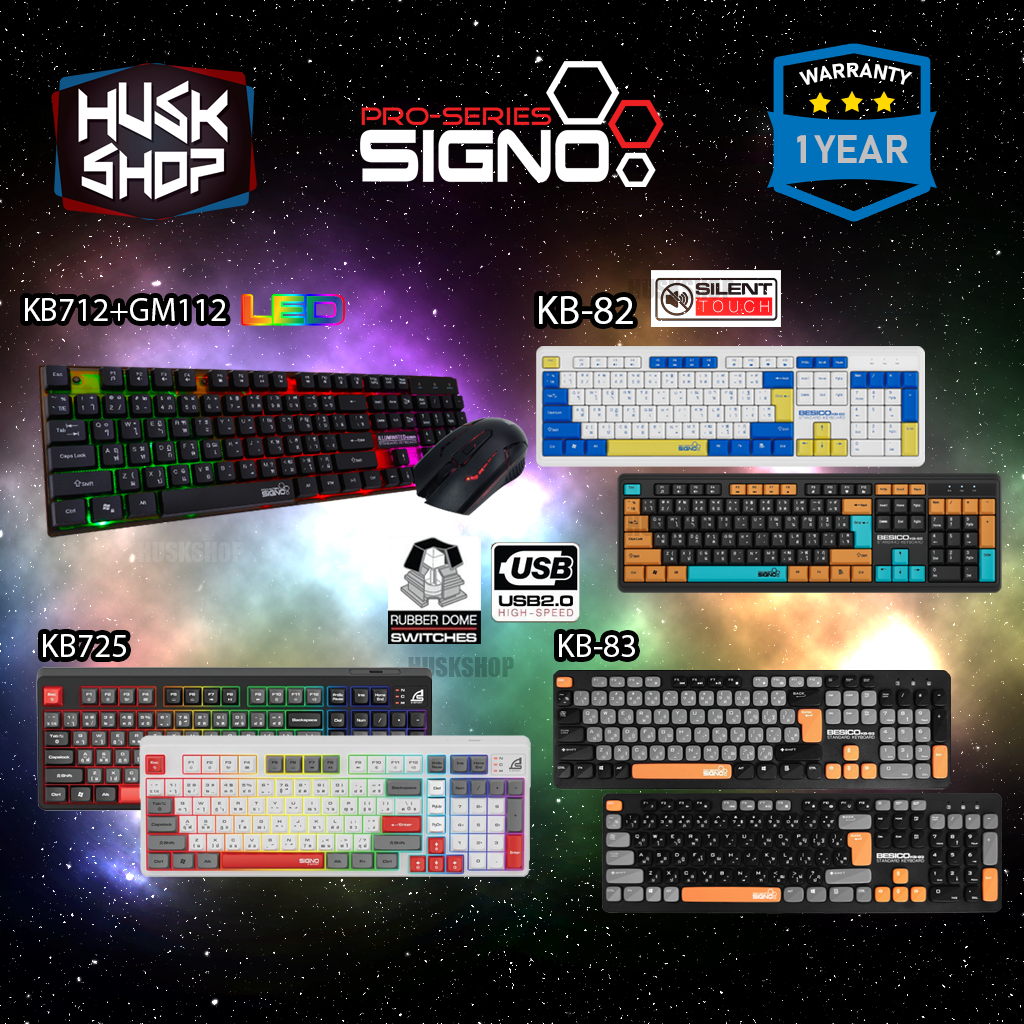 คีย์บอร์ดเกมมิ่ง SIGNO Keyboard KB-82 KB-83 KB-712 KB-725 ปุ่ม Rubber Dome ประกันศูนย์ 1ปี