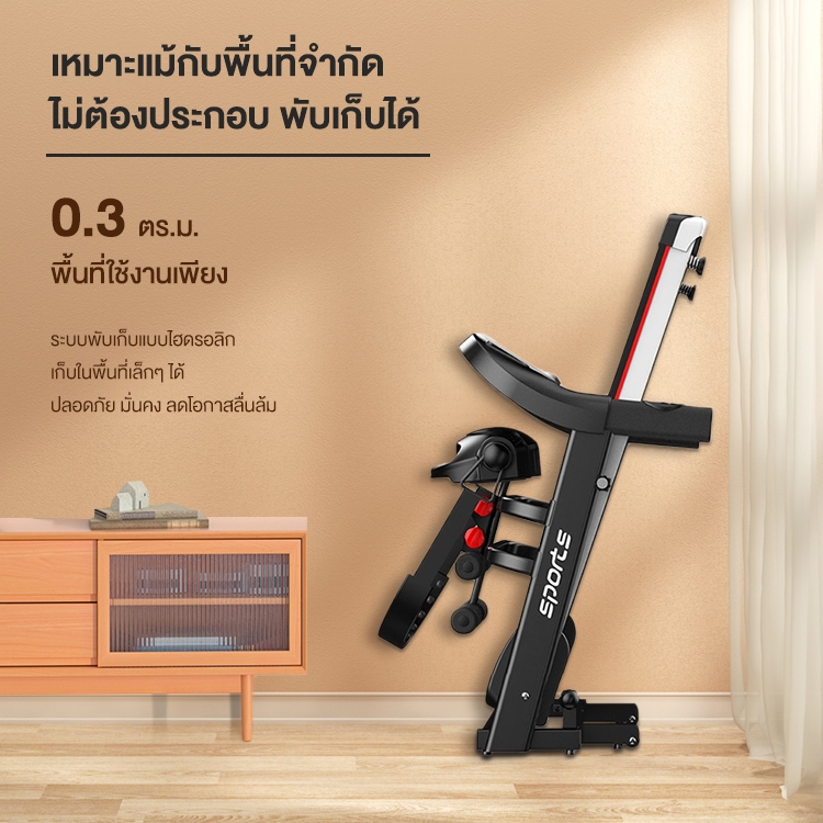 ลู่วิ่งไฟฟ้า เร็ว แรงลู่วิ่งพับ ได้ ที่วัดชีพจร สปริงโช๊คอัพใหญ่พิเศษ มีเครื่องนวด ออกกำลังกาย