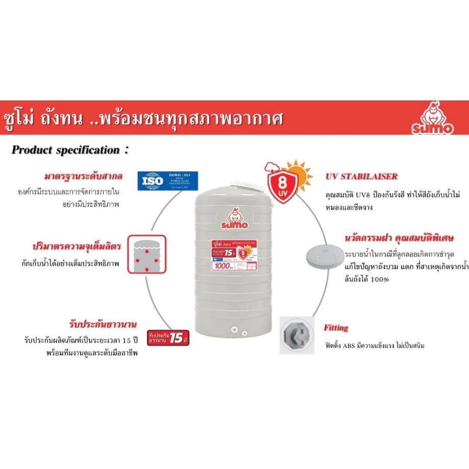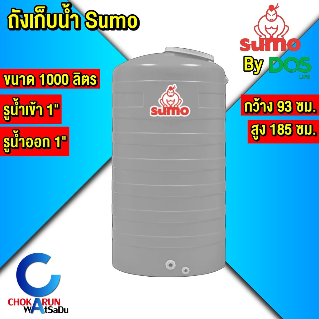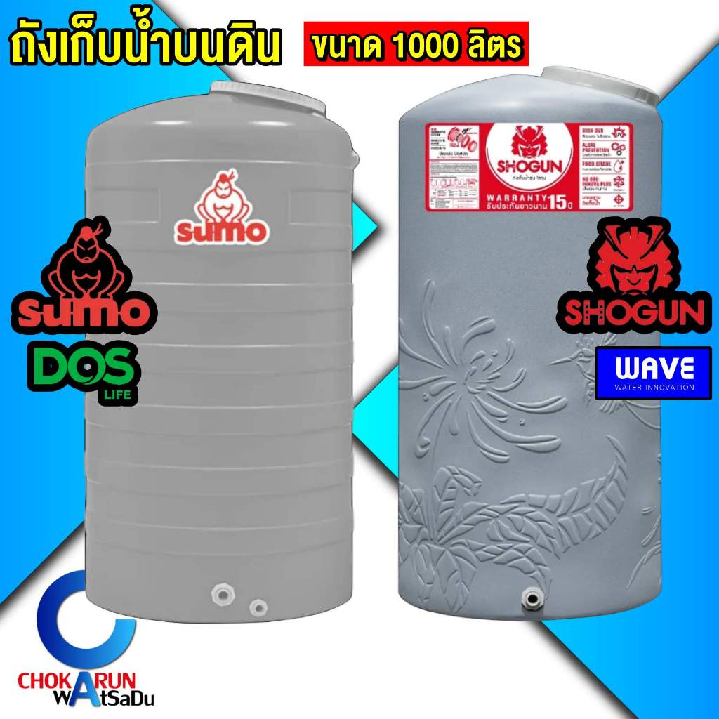 Sumo Shogun ถังเก็บน้ำ 1000 ลิตร [ Sumo By DOS ] [ Shogun by Wave ] สีเทา [ ไม่มีลูกลอย ] ถังน้ำ