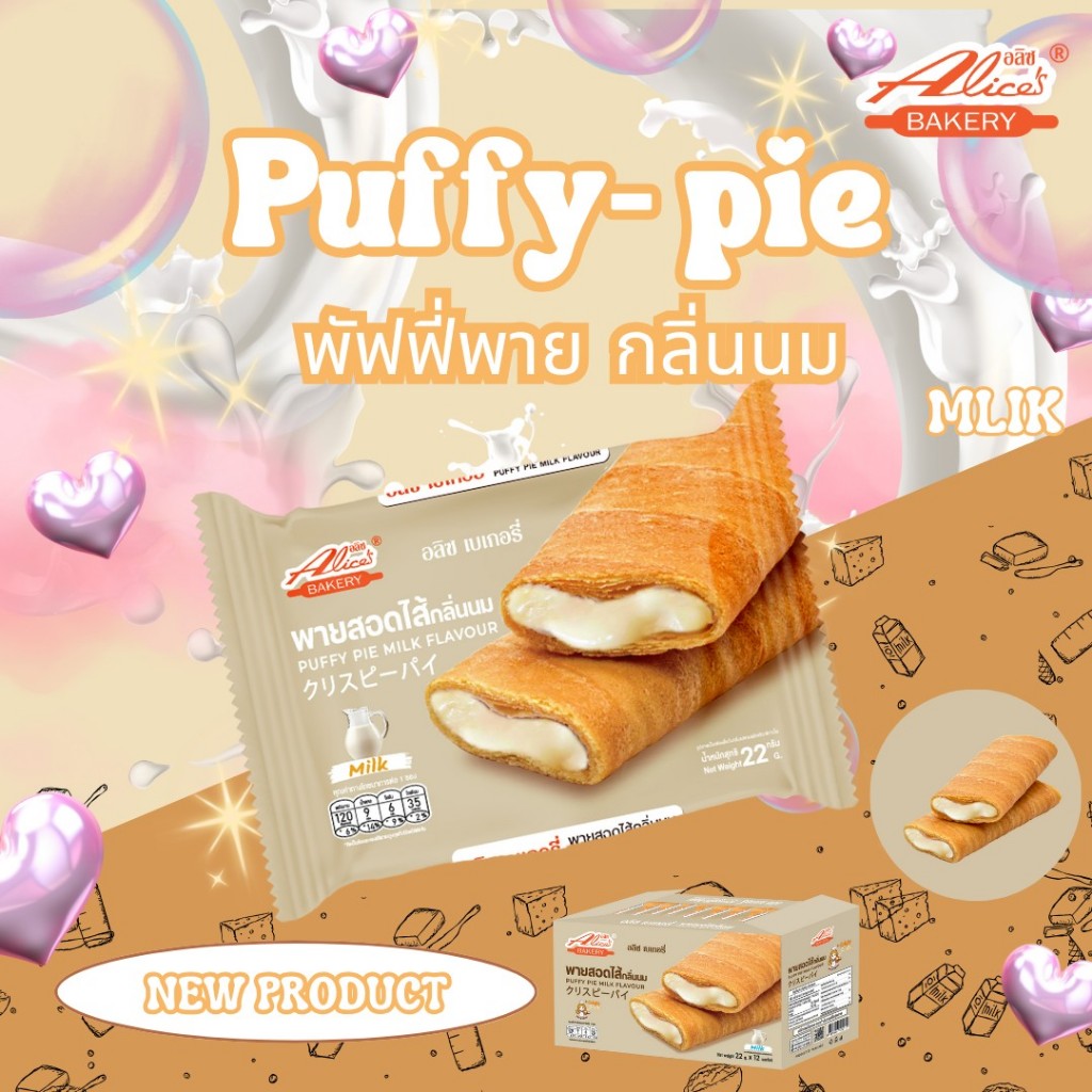 พายกรอบ สอดไส้ มีให้เลือกหลายรส อลิซ เบเกอรี่ Alice Bakery 1 กล่องมี 12 ชิ้น