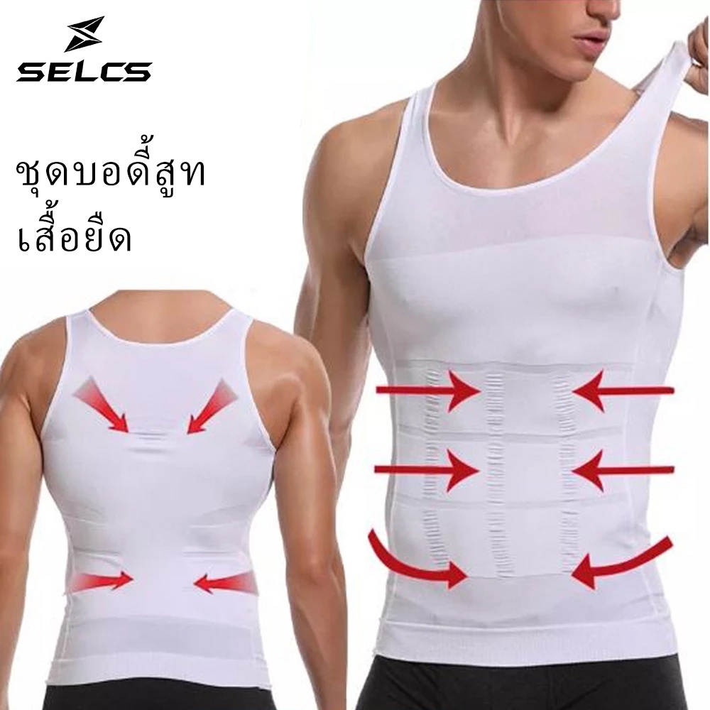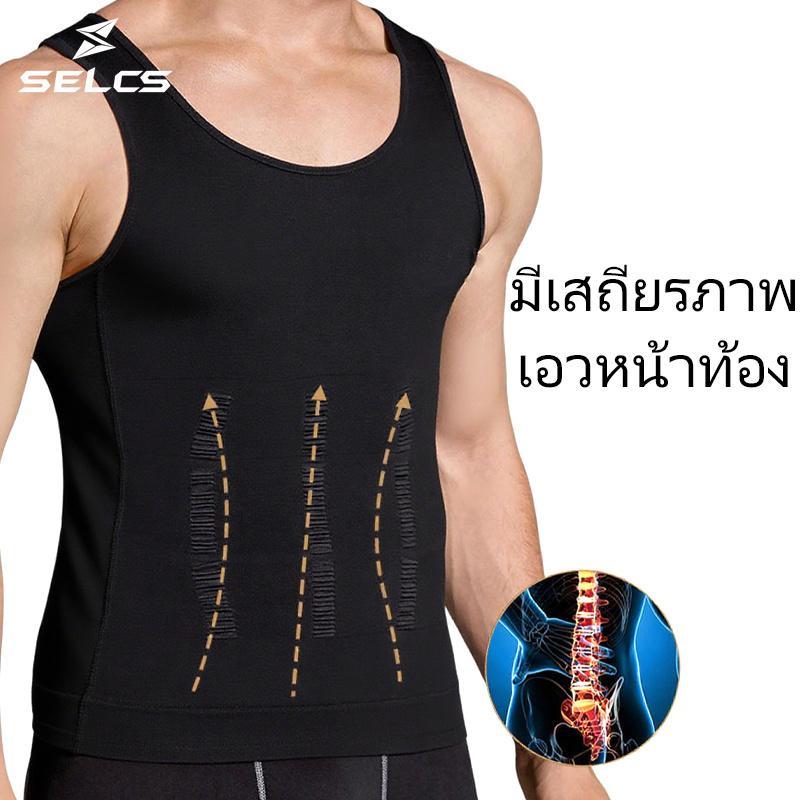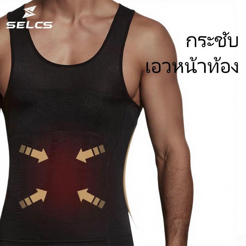SELCSชุดบอดี้สูท เสื้อยืด กระชับสัดส่วน รัดรูป เสื้อกล้าม เข็มขัด เทรนเนอร์ ลดน้ําหนัก สําหรับผู้ชาย
