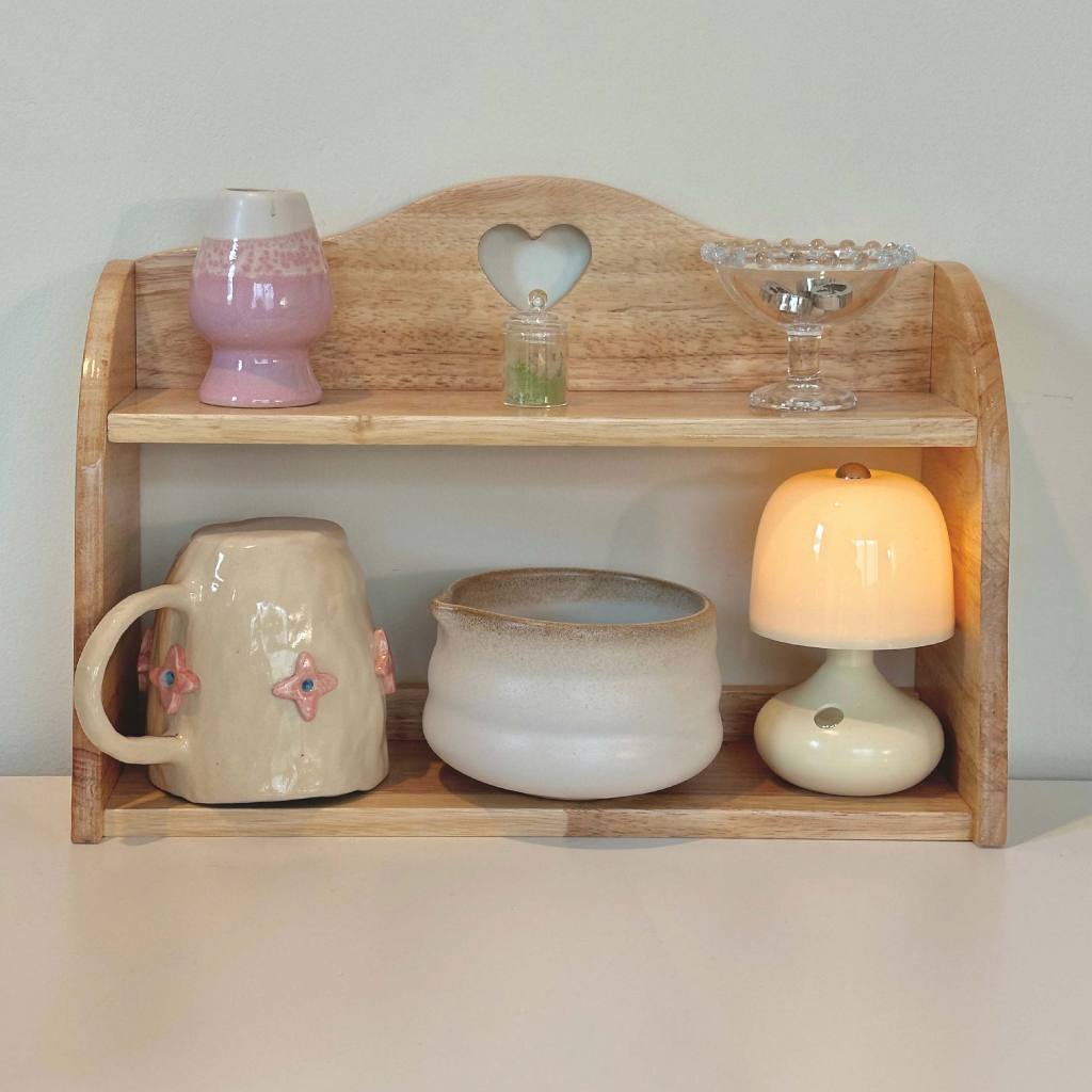 GARNET 🕰️ Ritual Shelf in Wood – ชั้นวางของไม้จริง เจาะรูรูปหัวใจและทำขอบมนเพิ่มความน่ารัก