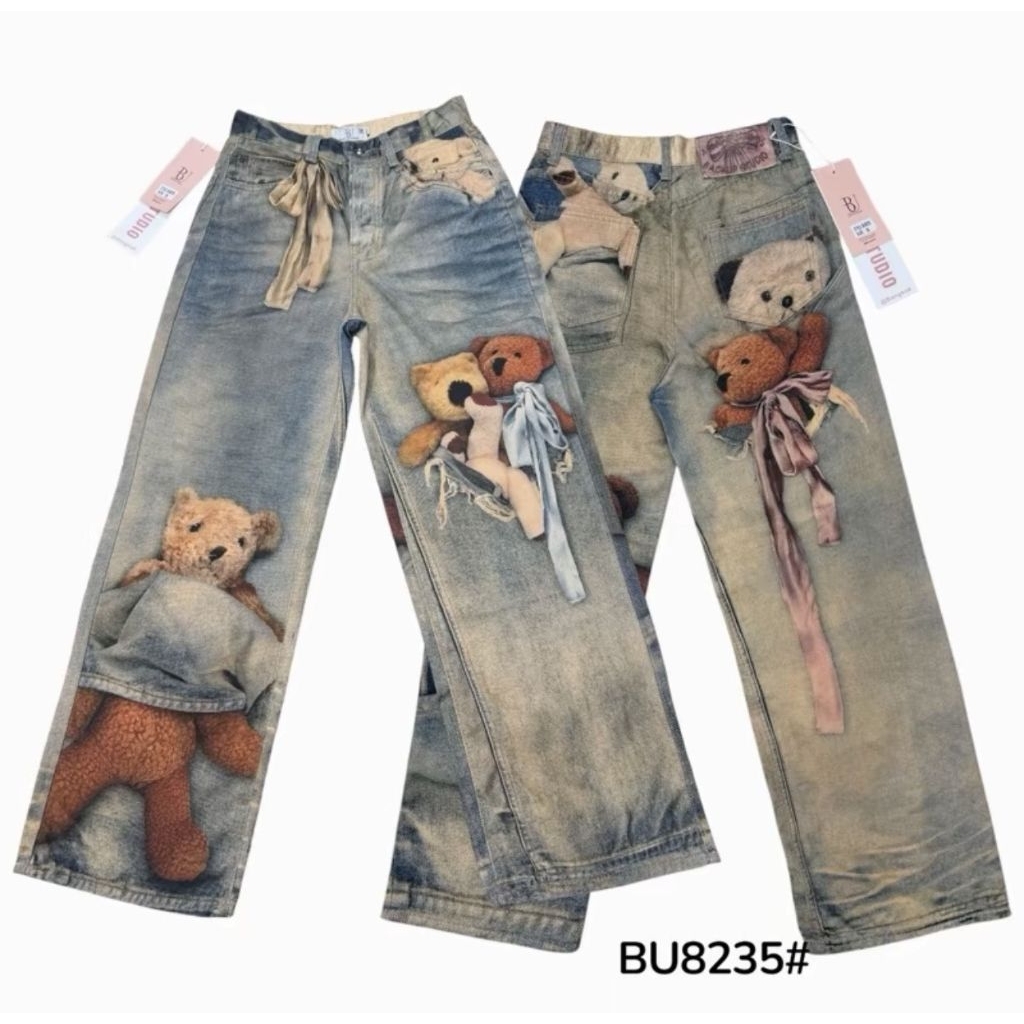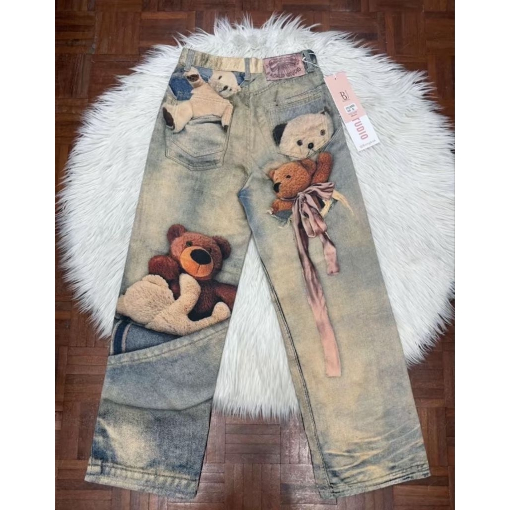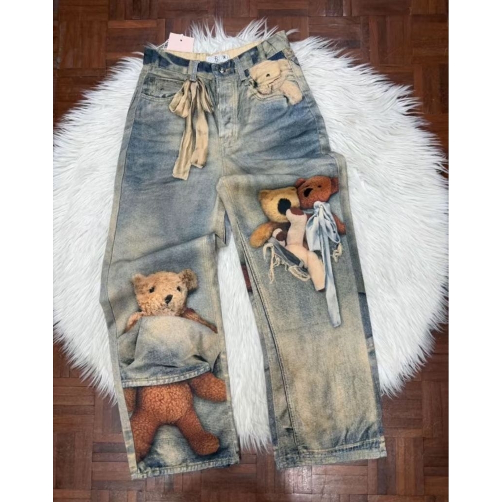 พร้อมส่งขาสั้น+ขายาว🐻กางเกงยีนส์พิมพ์ลายหมี รุ่นลิมิเต็ด ดาราเซเลปใส่กันเยอะ รุ่นขายดี กางเกงยีนส์รุ่นฮิตทั้งหญิงและชาย