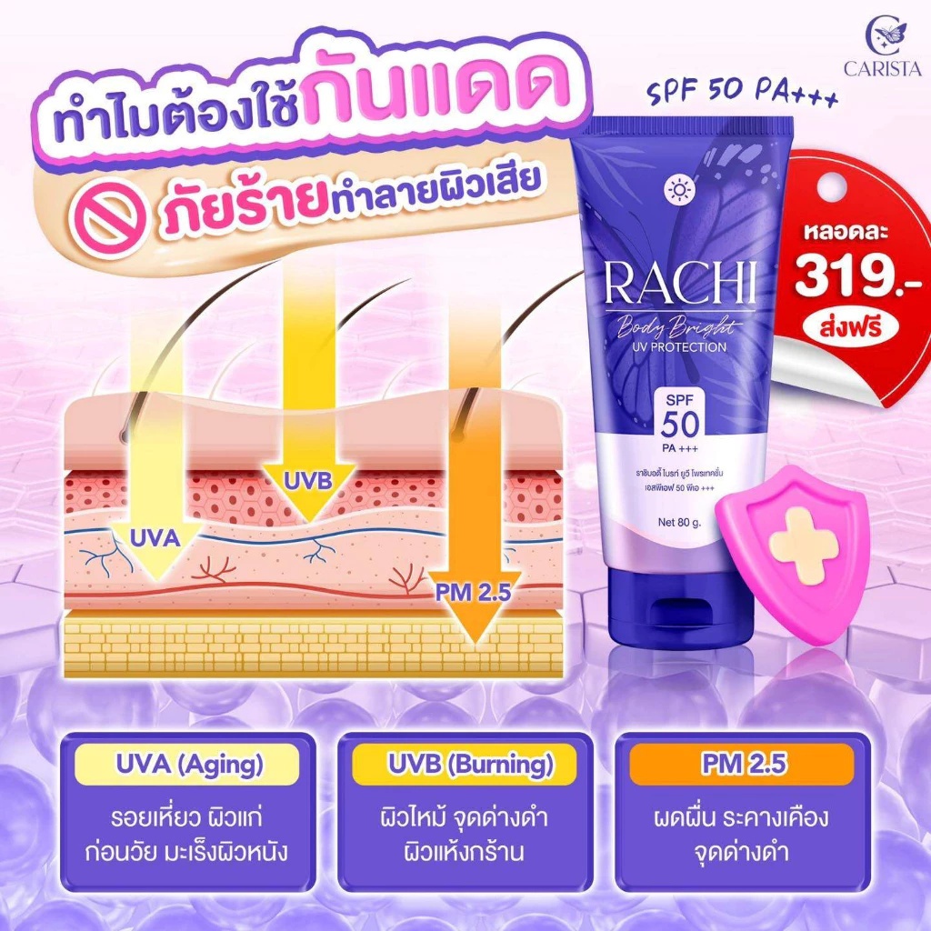 (หลอด) RACHI กันแดดราชิ(ทาตัว) สำหรับผิวกาย (ปริมาณ 80 g.)