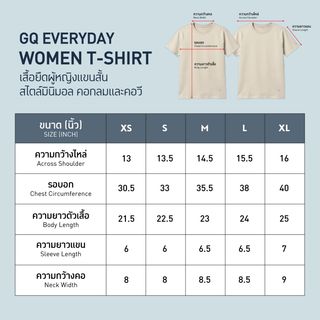 GQ Everyday Women T-Shirt เสื้อยืดคอวี ผ้านุ่ม ระบายอากาศดี ไม่มีป้ายคอ ไม่คัน