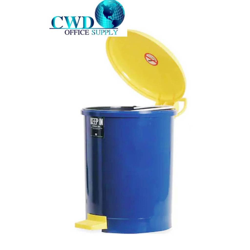 ถังขยะมีฝาปิด (10 ลิตร) คีปอิน RW9084 สีน้ำเงินฝาเหลือง