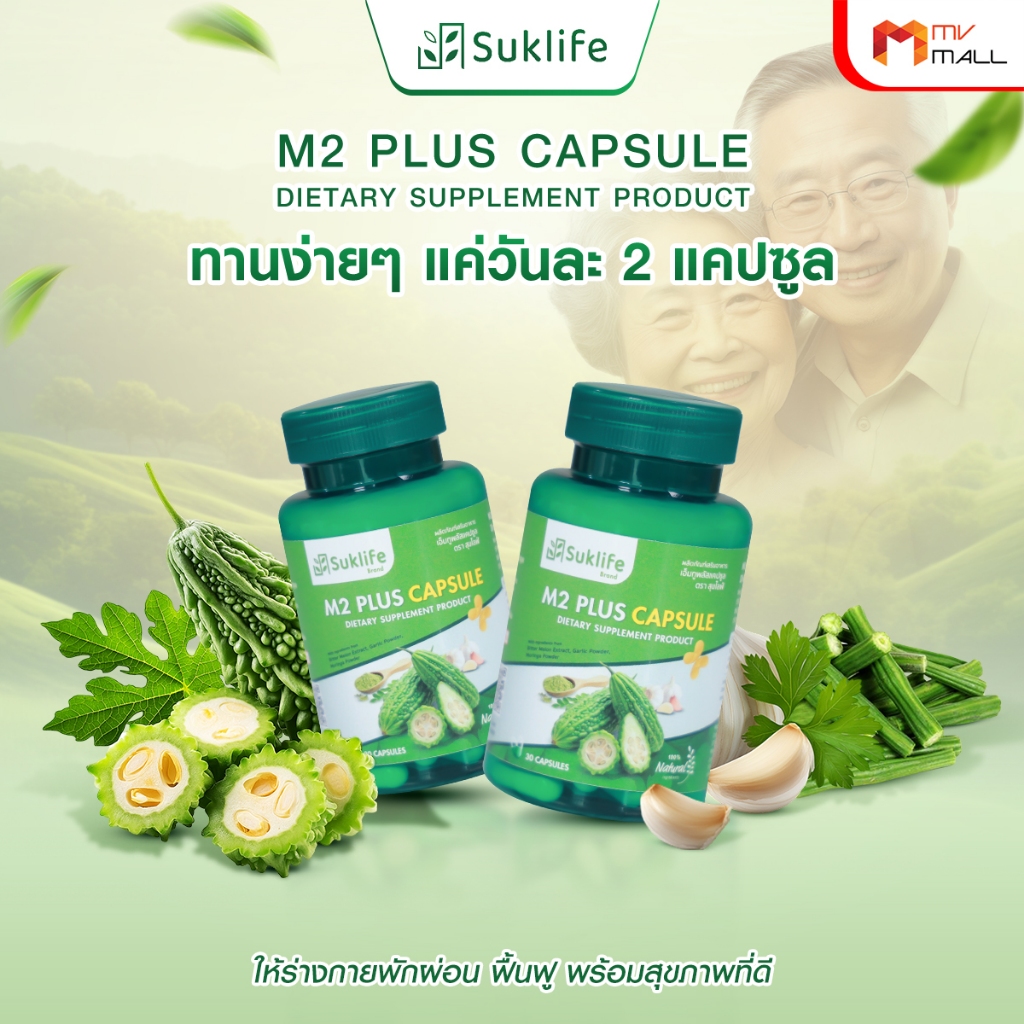 [พร้อมส่ง] SukLife M2 Plus สุขไลฟ์ 3in1 สารสกัดสมุนไพรไทย มะระขี้นก มะรุม กระเทียม 30แคปซูล 6 กระปุก