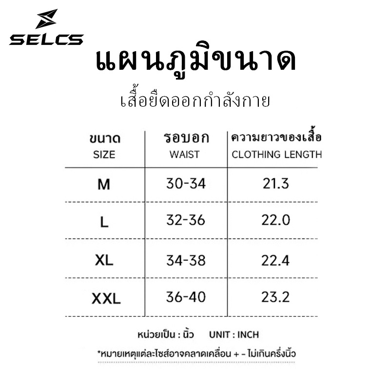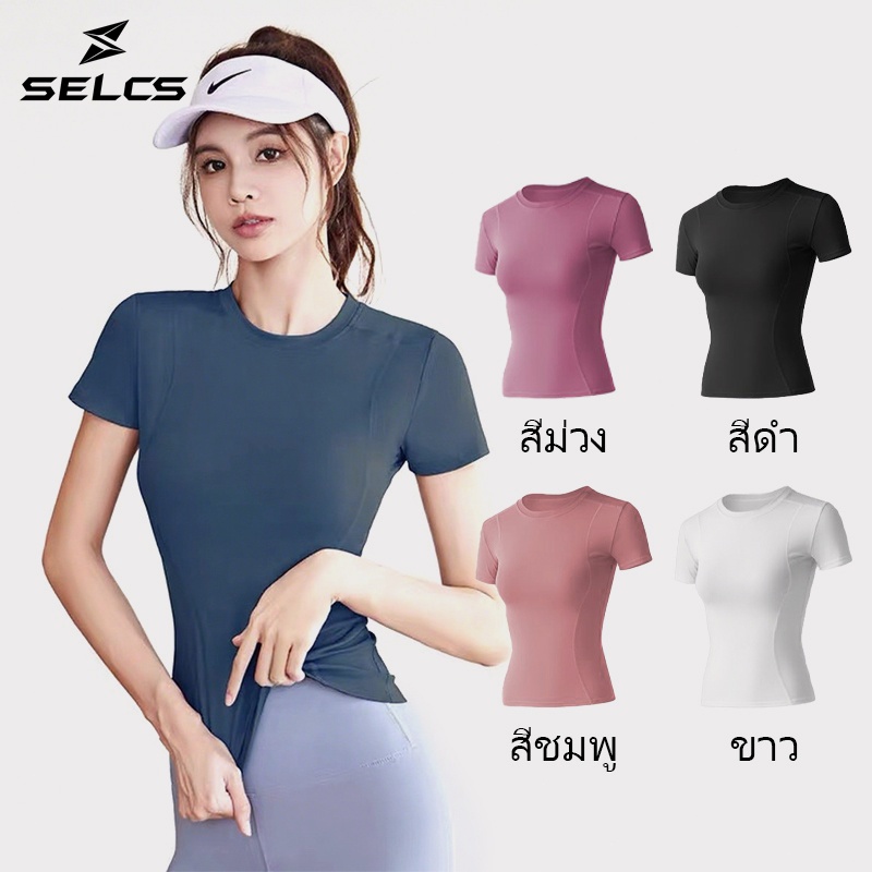 SELCS เสื้อยืดออกกำลังกายผู้หญิง ทรงสวยเข้ารูป ผ้ายืดหยุ่นได้ดี ระบายอากาศ แห้งเร็ว Size S-XXL