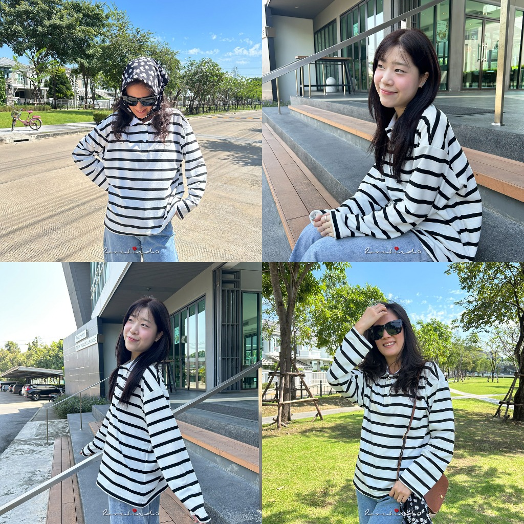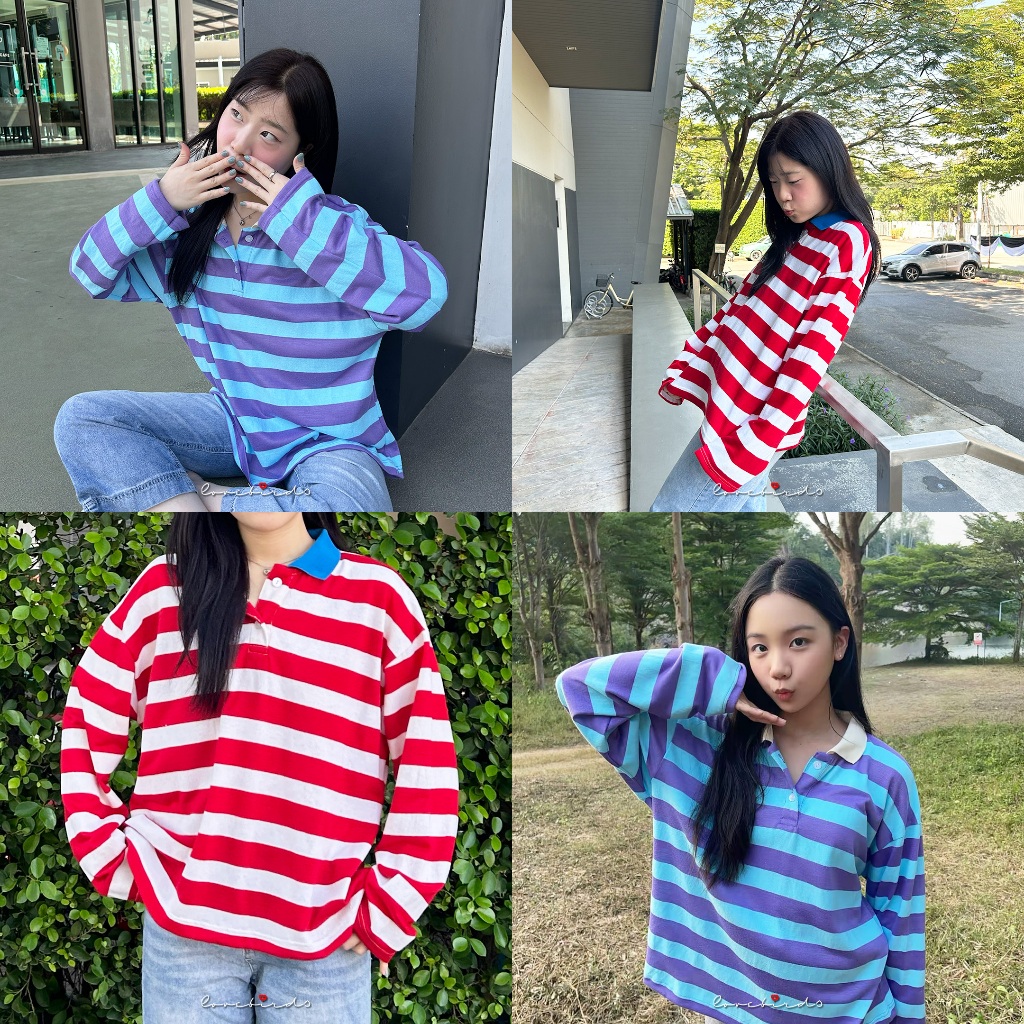 เสื้อเชิ๊ตโปโลคอปกแขนยาวผ้าลายทาง LOVEBIRDS — Polo Shirt Long Sleeve limited edition