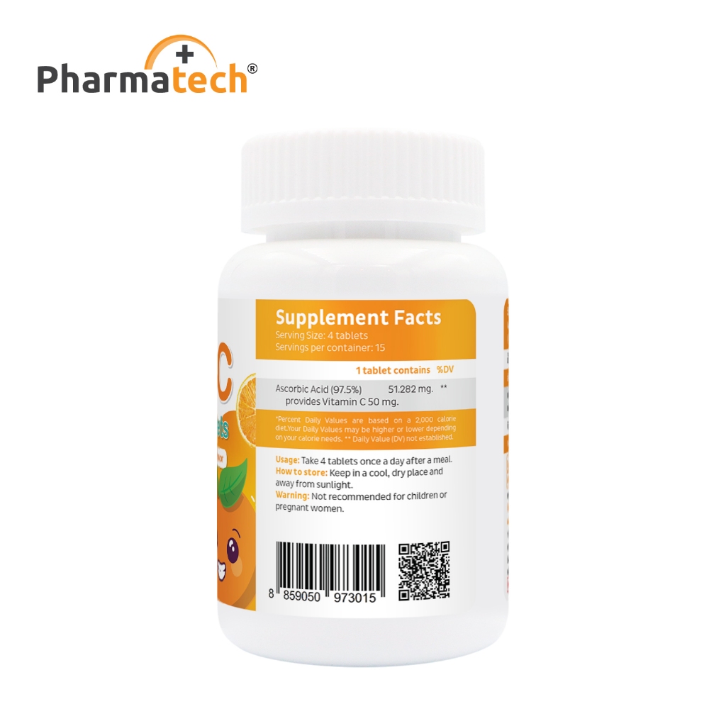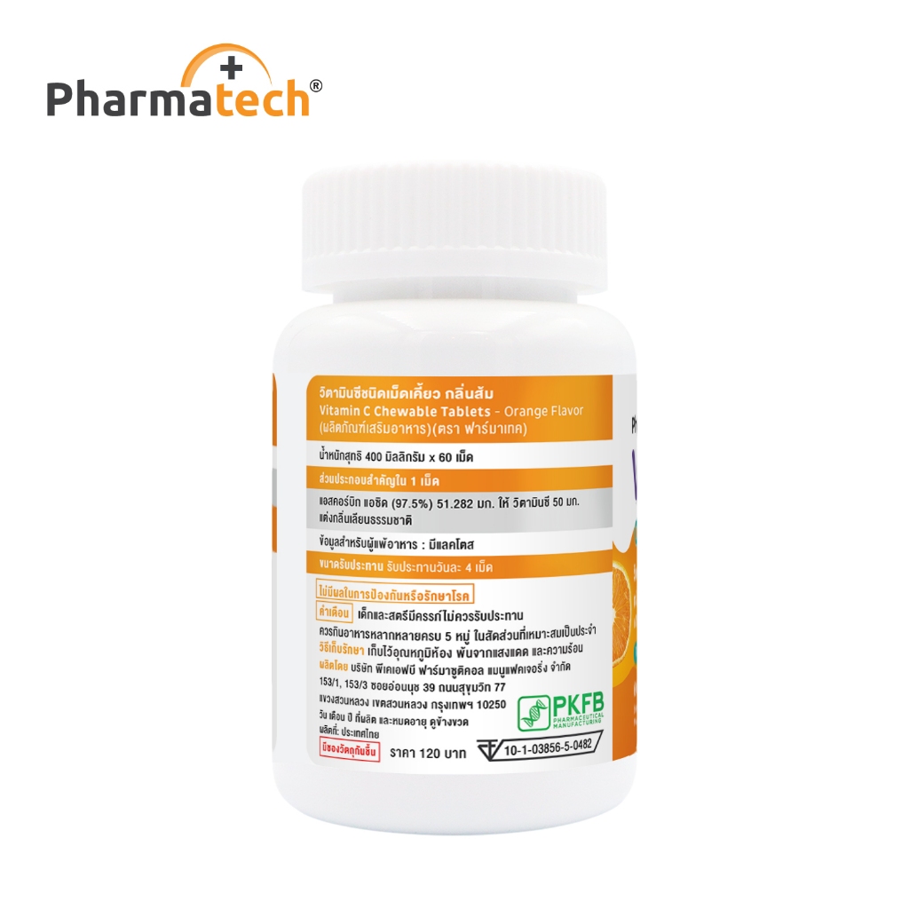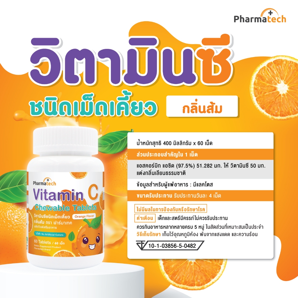 [ซื้อ 1 แถม 1] วิตามินซี เม็ดเคี้ยว กลิ่นส้ม ฟาร์มาเทค Vitamin C Chewable Tablets Orange Flavor Pharmatech วิตามินซี