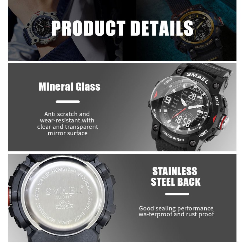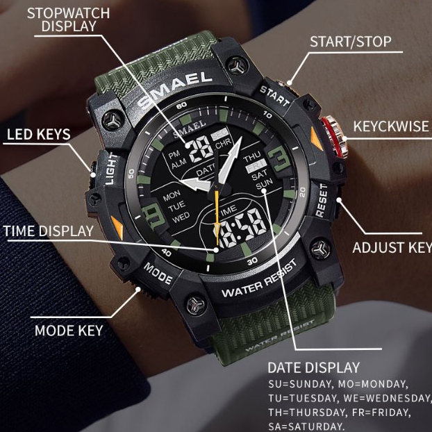 SMAEL 8117 นักเรียนกีฬากันน้ำอิเล็กทรอนิกส์นาฬิกาผู้ชายดิจิตอลเดิน Pedometer ของขวัญนาฬิกา