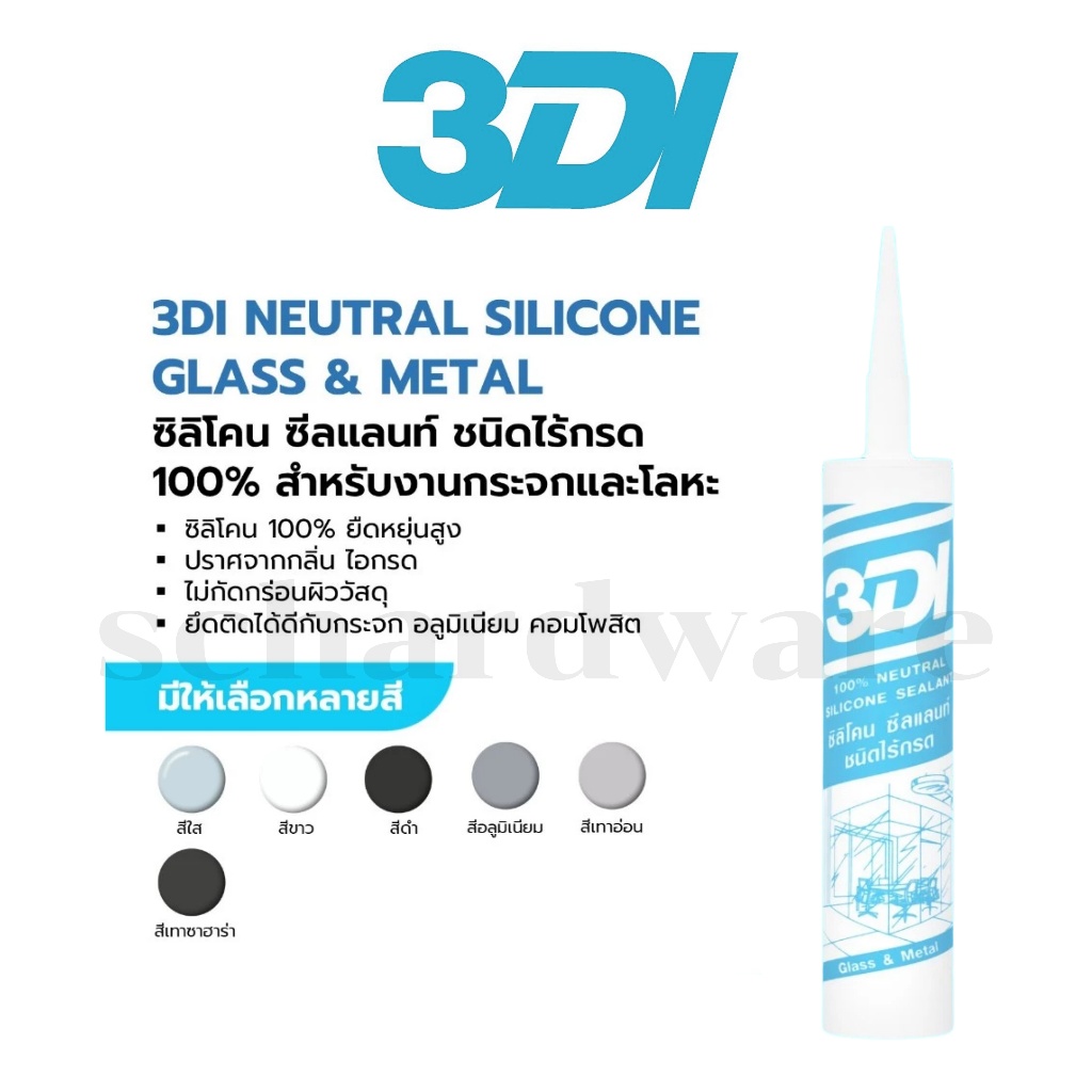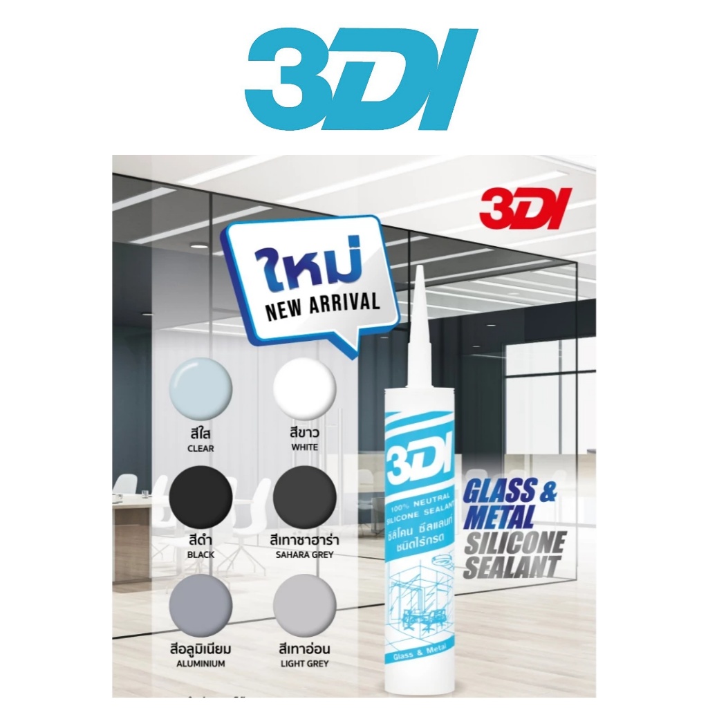 ซิลิโคน กาวซิลิโคน ซีลแลนท์ ชนิดไร้กรด ยกลัง 24 หลอด (สีอลูมิเนียม สีเทาอ่อน สีเทาซาฮาร่า) 3DI (หลอดฟ้า)