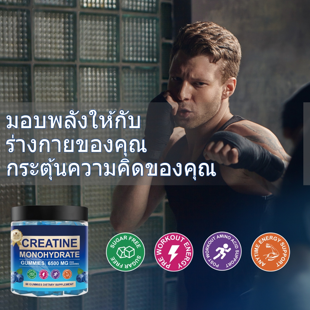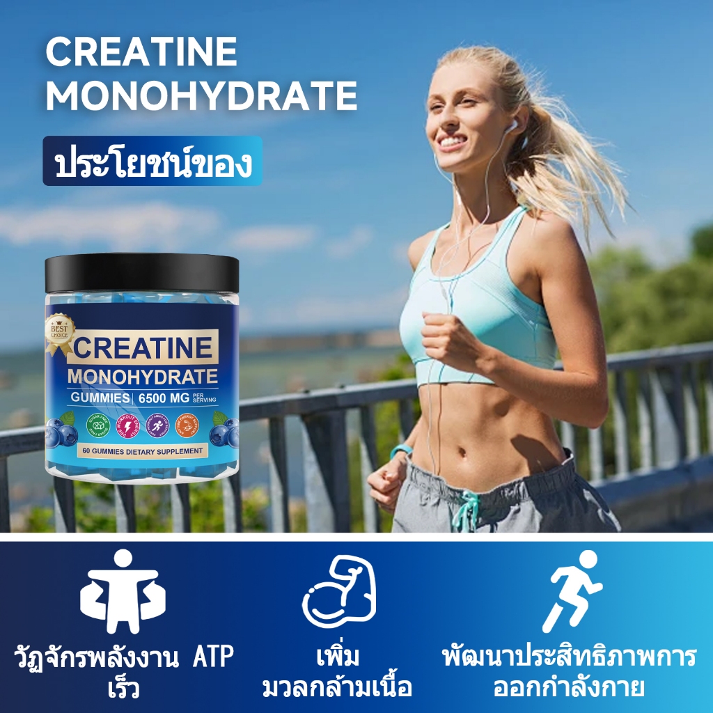 Ozmolts Creatine Gummies ครีเอทีน Promote Recovery เติมพลังงาน Creatine Monohydrate บลูเบอร์รี่ 60เม็ด