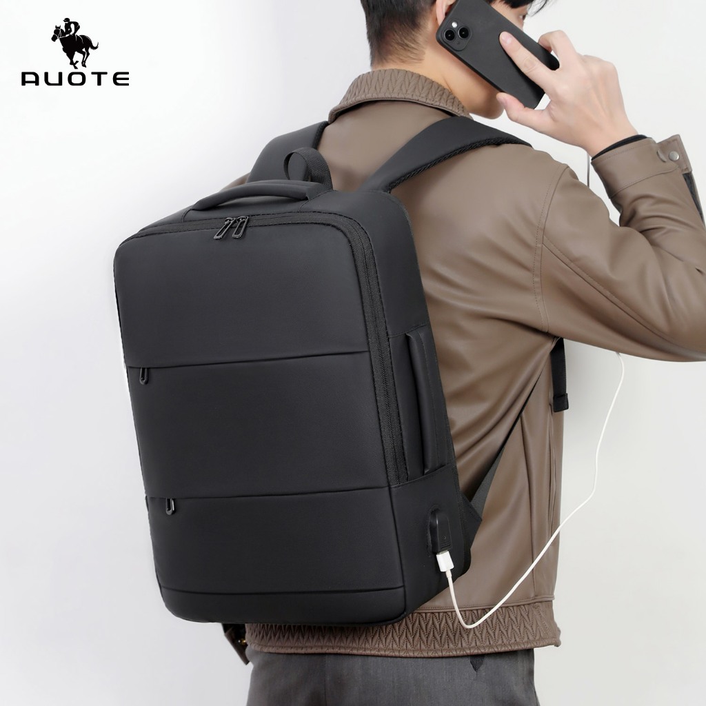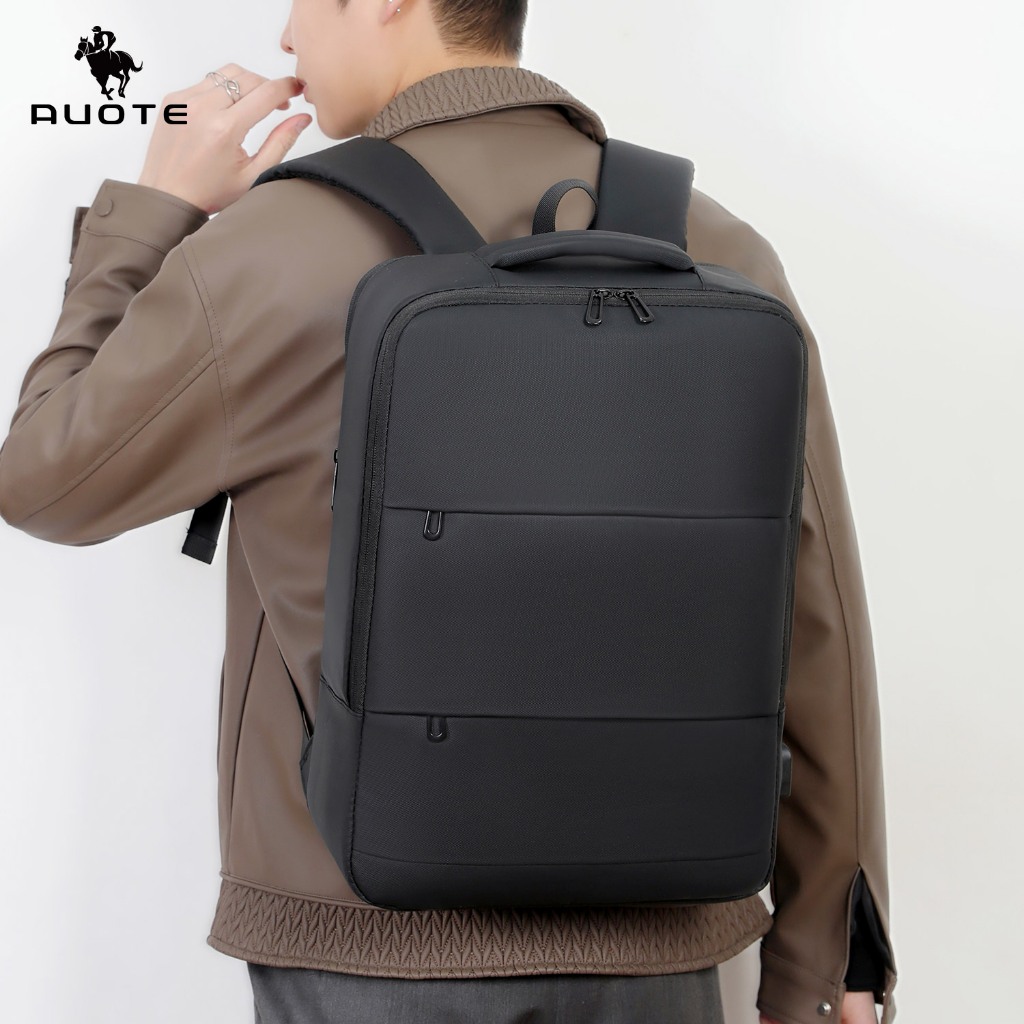 AUOTE กระเป๋าเป้สะพายหลังแฟชั่น Unisex สำหรับใส่โน้ตบุ๊กสำหรับธุรกิจ ขยายได้ ความจุขนาดใหญ่ 15.6 นิ้ว กระเป๋าเป้สะพายหลังป้องกันการโจรกรรมแบบอเนกประสงค์
