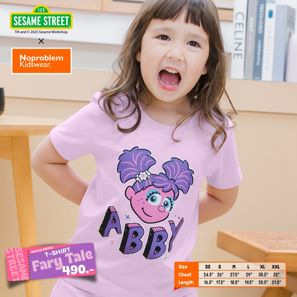 เสื้อยืดคอกลมเด็กหญิง ANKGS.68002 - SESAME STREET X NO PROBLEM - PRINTED T- SHIRT