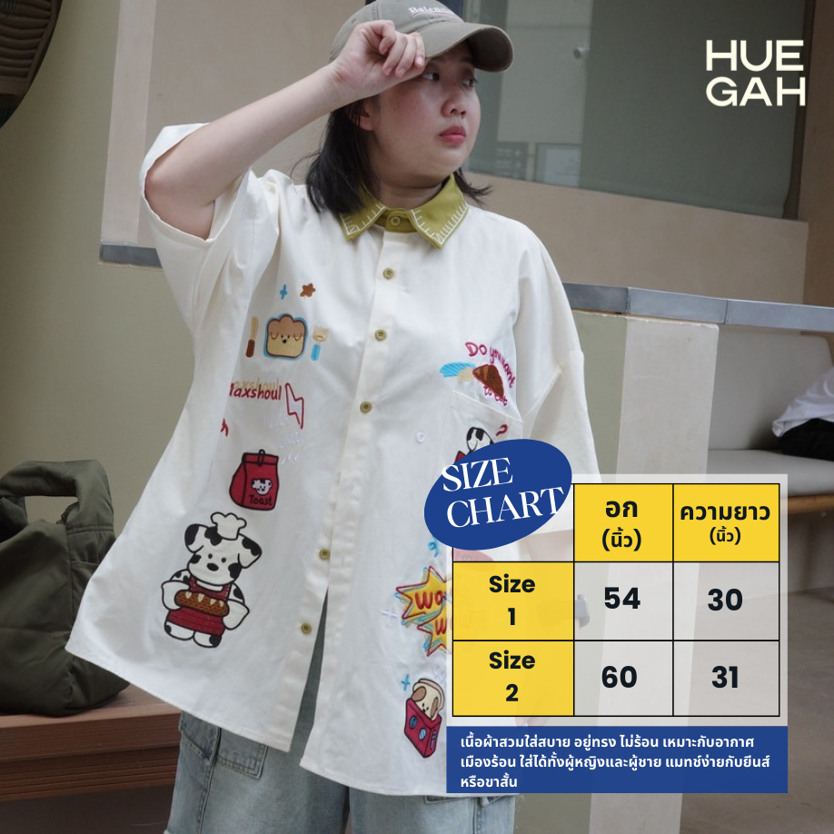 HUEGAH Pawtisserie Shirt ปักลาย ไซซ์ใหญ่
