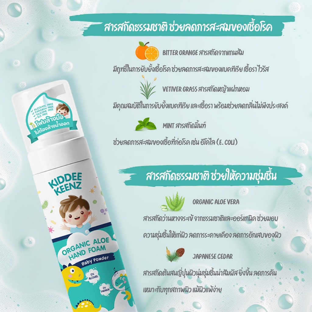 โปรลด 57% KIDDEE KEENZ คิดดี้ คีนซ์ โฟมล้างมือ ไม่ต้องล้างน้ำออก กลิ่น Babypowder พกพาสะดวก EXP : 19/04/2027