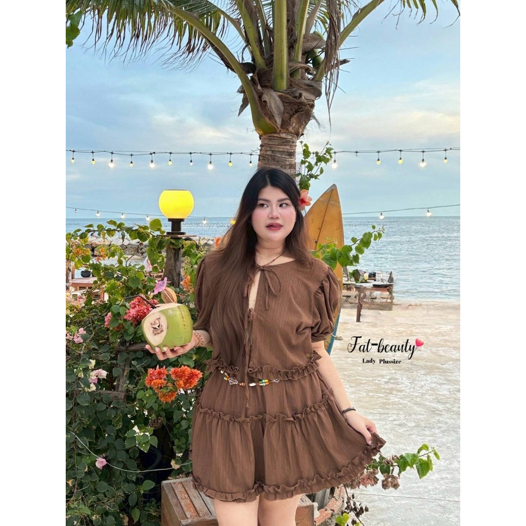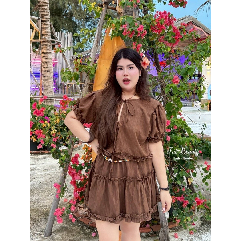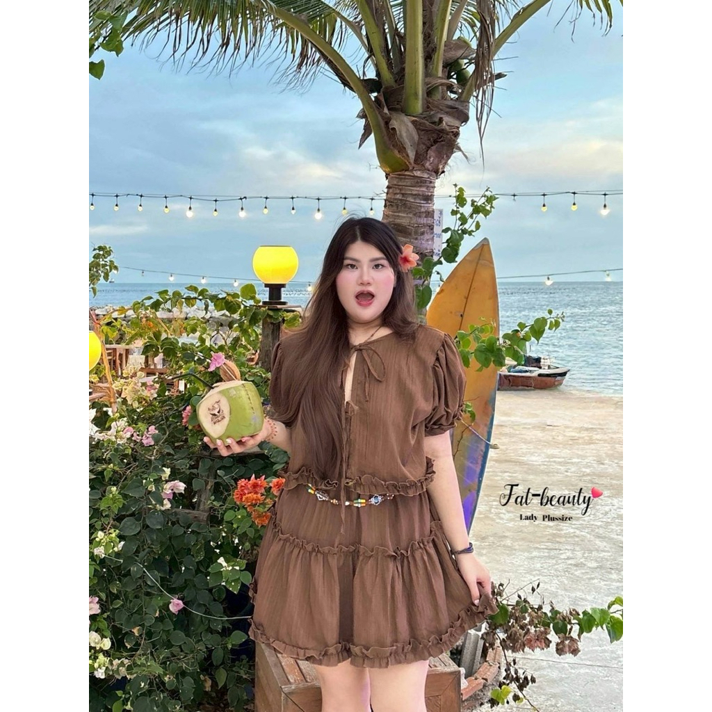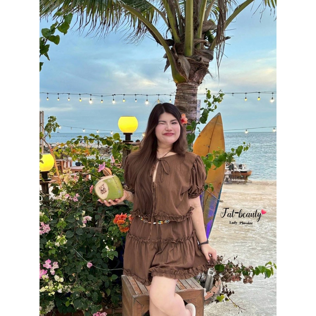 (FB) เซต เสื้อผูกหน้า+กระโปรง แต่งระบาย น่ารัก ใส่ไปทะเล คาเฟ่ เริ่ดมาก เสื้อผ้าสาวอวบอ้วน พลัสไซส์ ไซส์ใหญ่