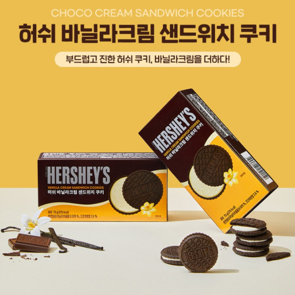 Hershey's เฮอร์ชีย์ OREO Sandwich Cookie โอริโอ้เกาหลี ขนมคุกกี้สอดไส้ครีม 허쉬 오레오 รสวานิลลา