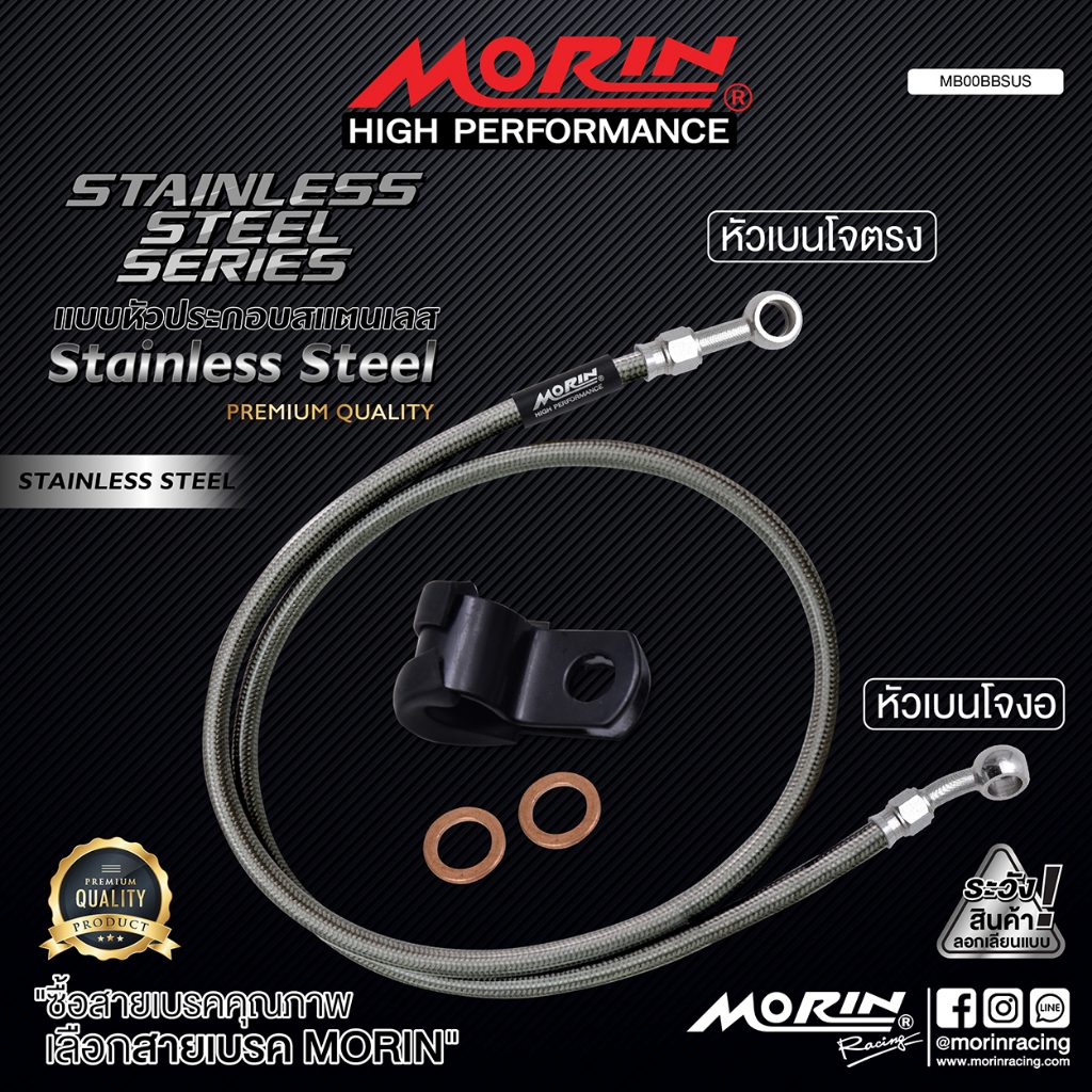 MORIN สายเบรคถัก หัวเบนโจตรง+เบนโจงอ รุ่นหัวสแตนเลส แท้ 100% (Leewattana อะไหล่แต่งมอเตอร์ไซค์)