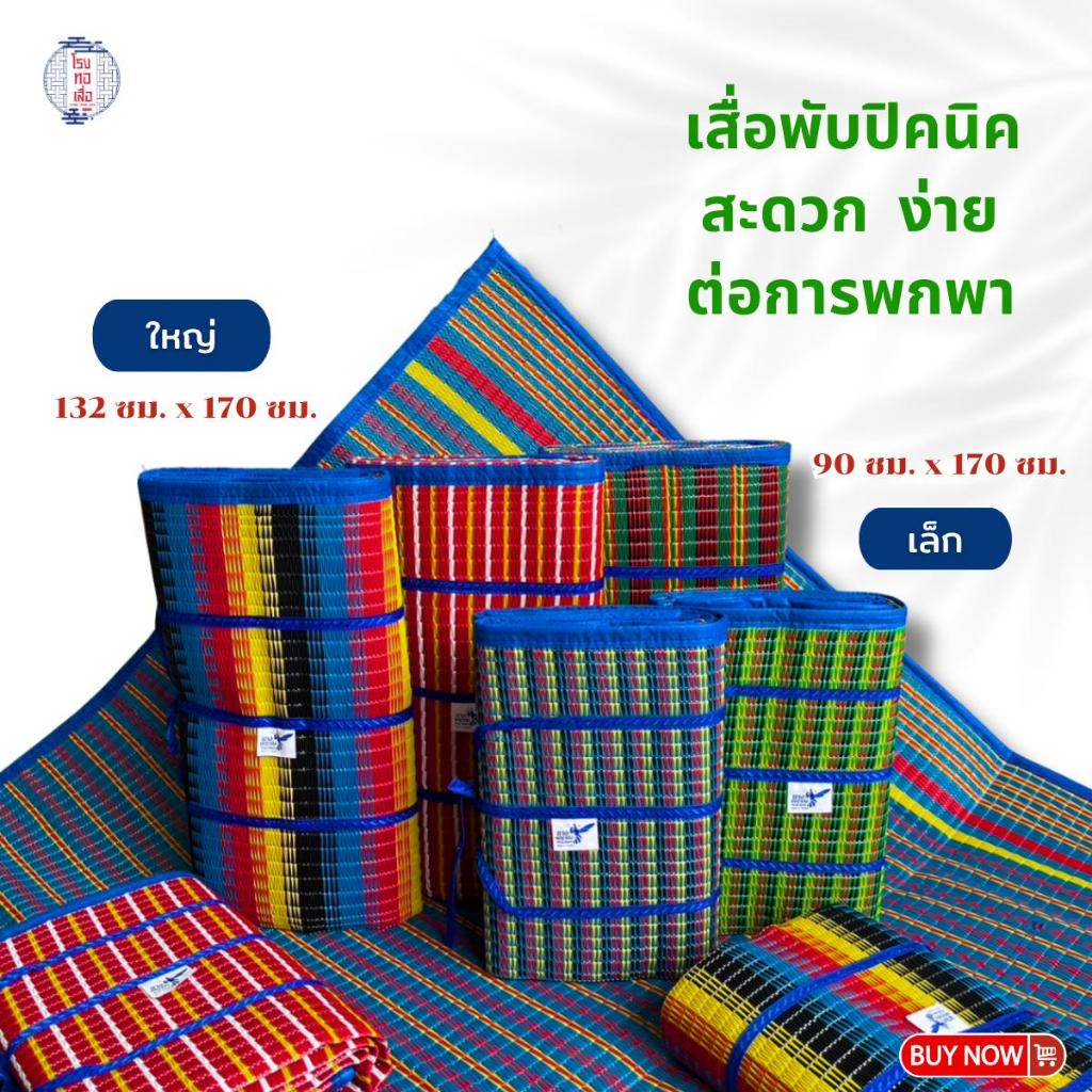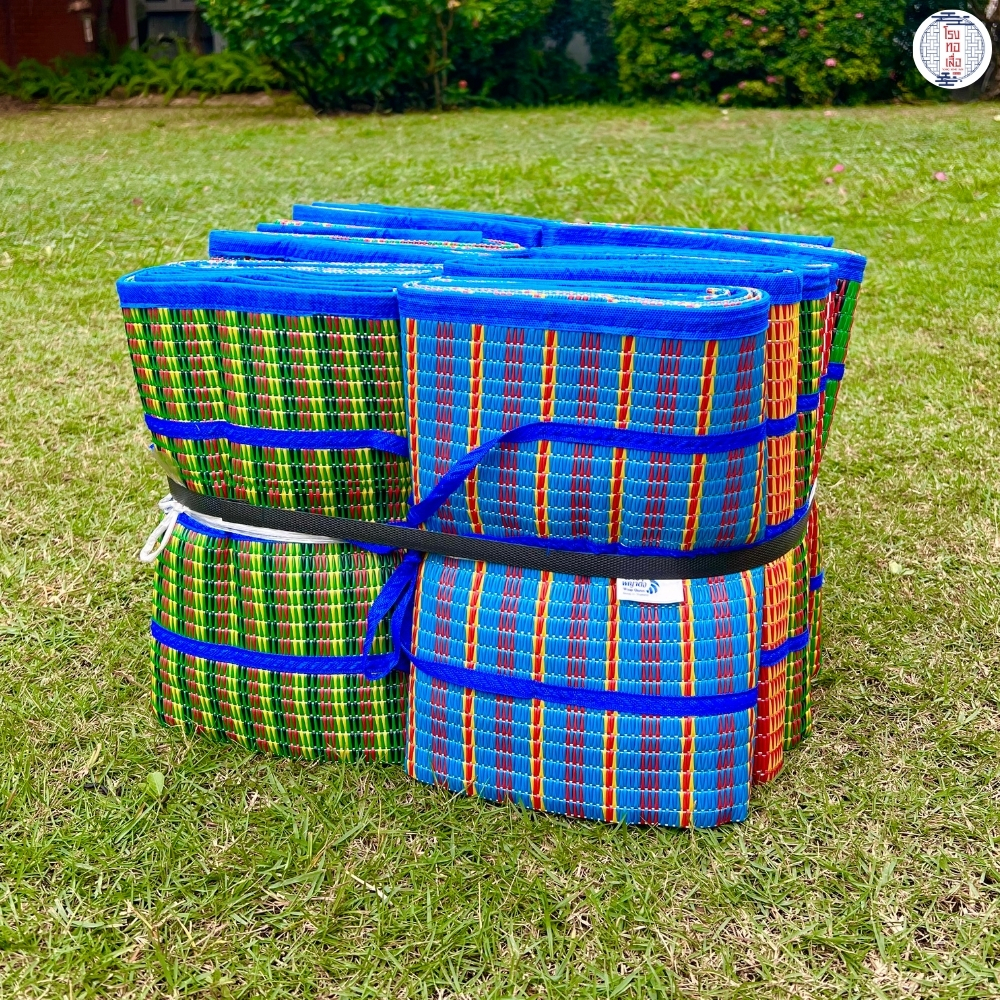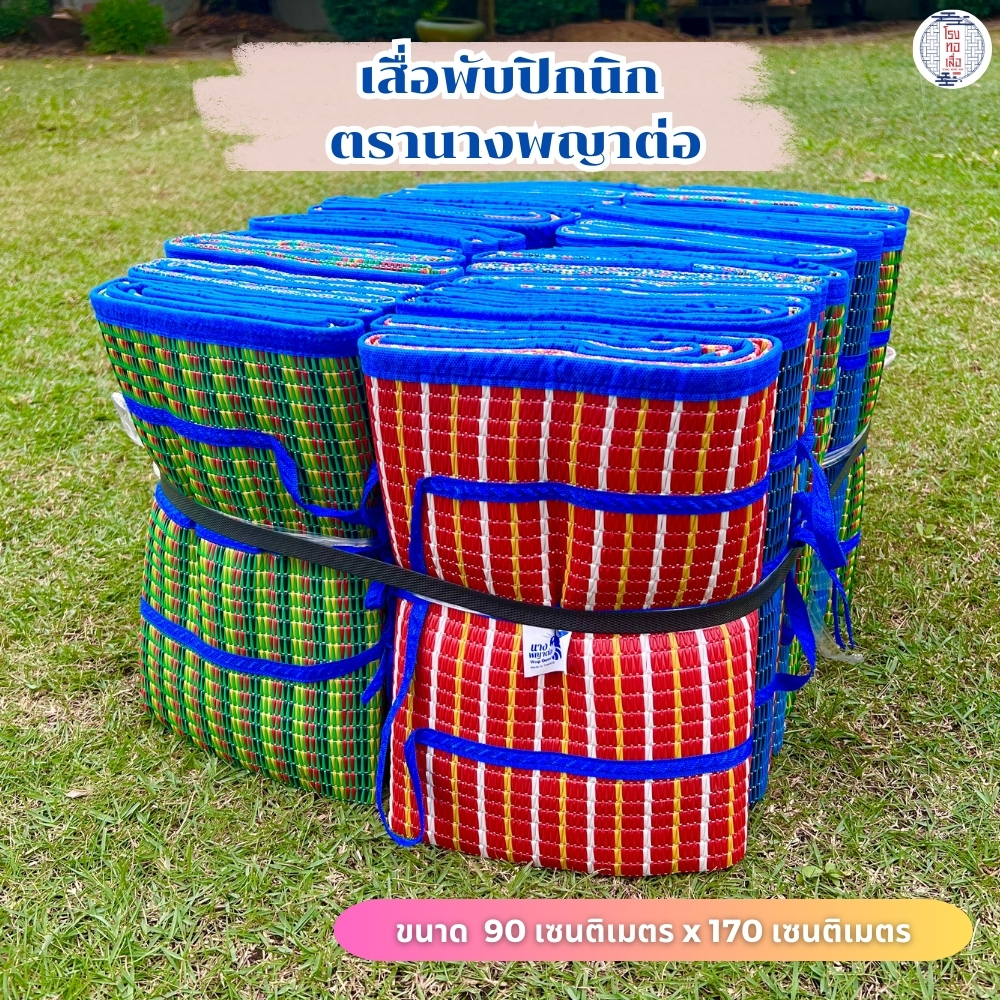 (ราคาส่งยกมัด) เสื่อพลาสติกพับได้ มีหูหิ้ว กะทัดรัด สะดวกพกพา มี 2 ขนาด คละสี คละลาย รับประกันคุณภาพ - นางพญาต่อ