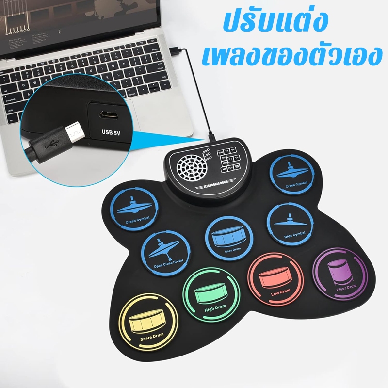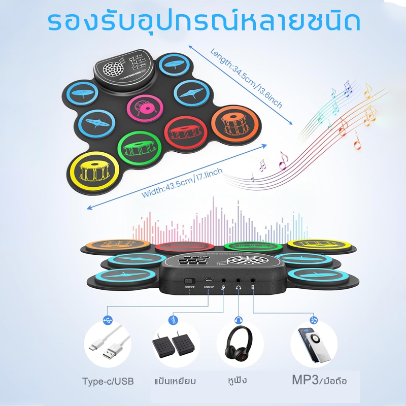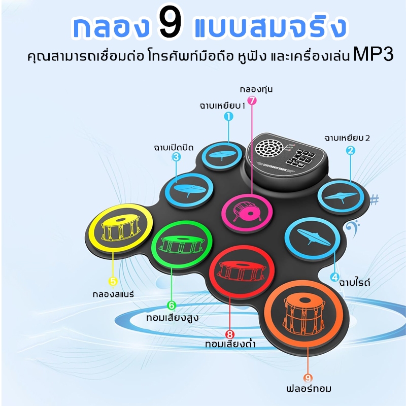 รับประกัน 10ปี SUPOR กลองอิเล็กทรอนิกส์ 9 ชิ้น กลองไฟฟ้า Electric Drum แบบพกพากลองชุดเด็ก ระบบเสียง 3D รอบทิศทาง