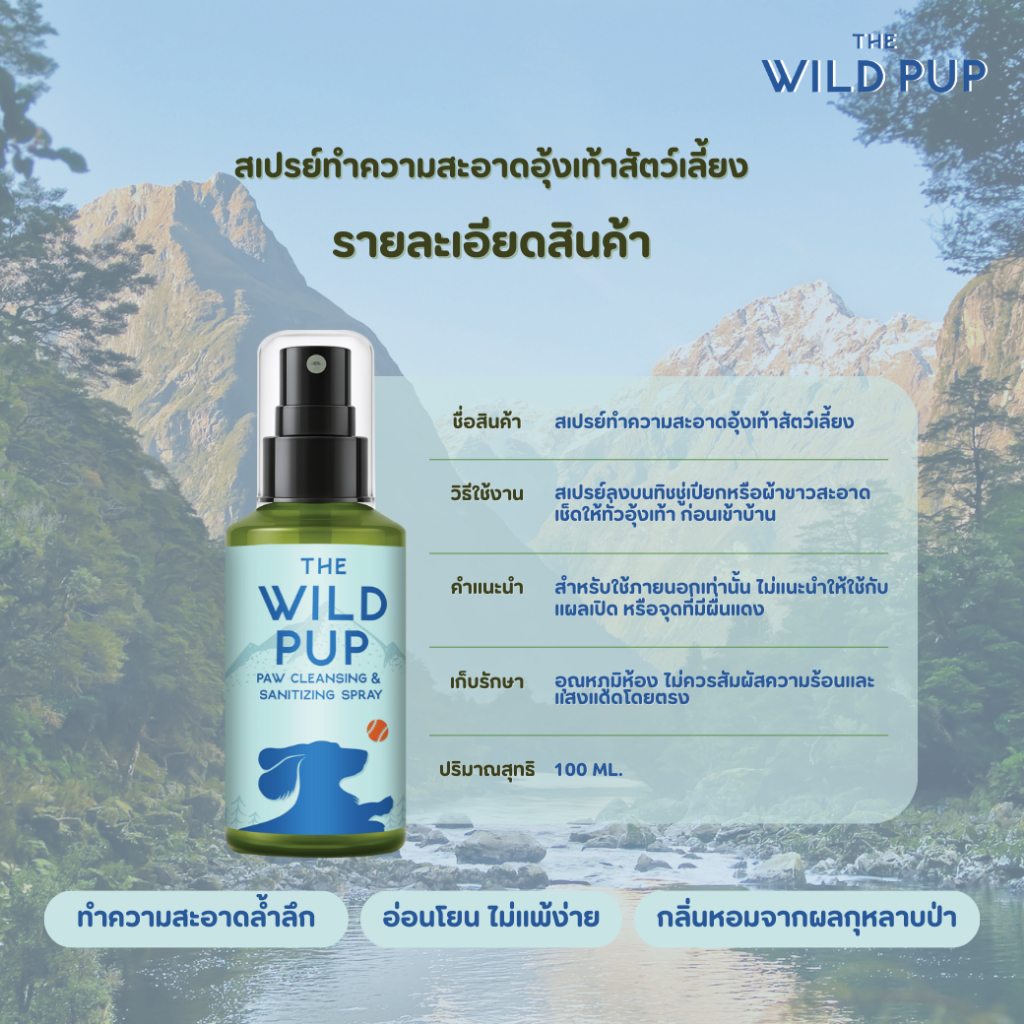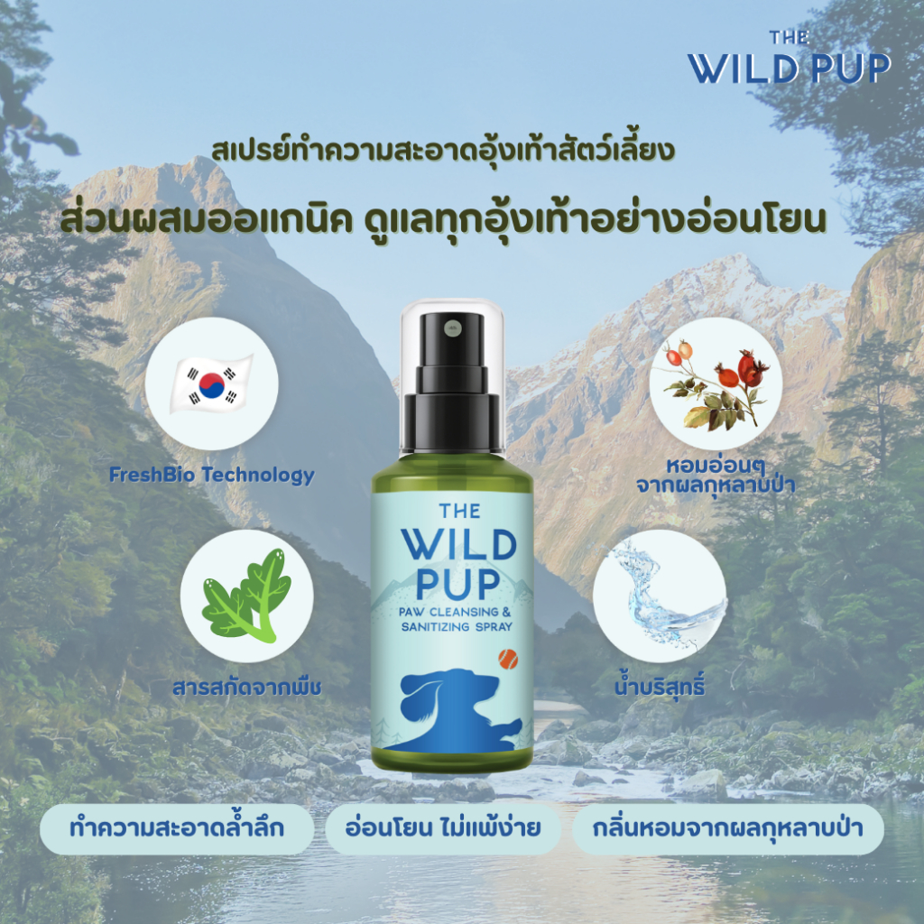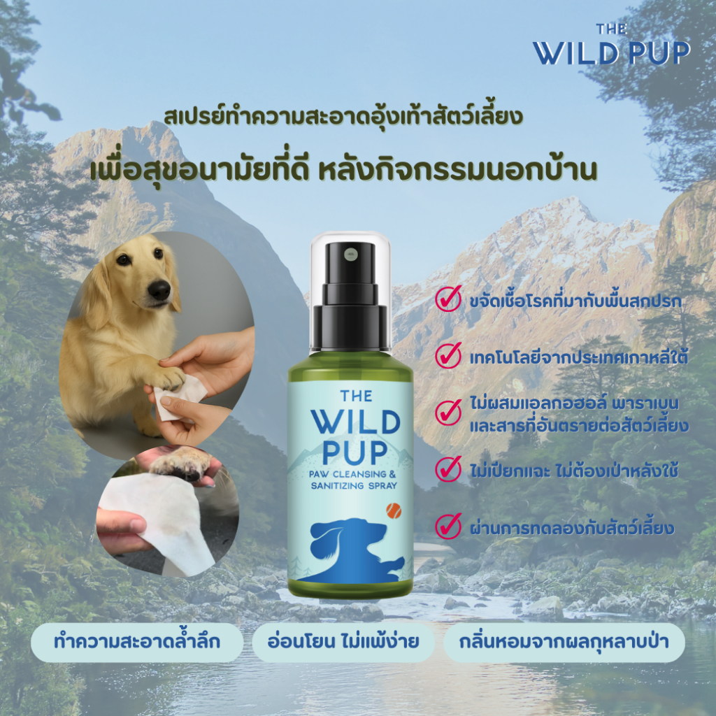 The Wild Pup สเปรย์เช็ดอุ้งเท้าสัตว์เลี้ยง สูตรอ่อนโยน ฆ่าเชื้อโรค นำเข้าส่วนผสมจากเกาหลีใต้