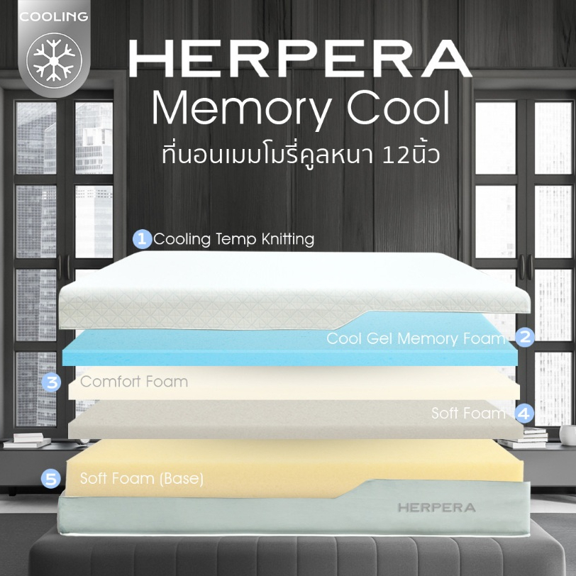 HERPERA ที่นอนคูลเจลเมมโมรี่โฟม ความหนา 12 นิ้ว รุ่น Memory Cool (จัดส่งแบบสุญญากาศ)