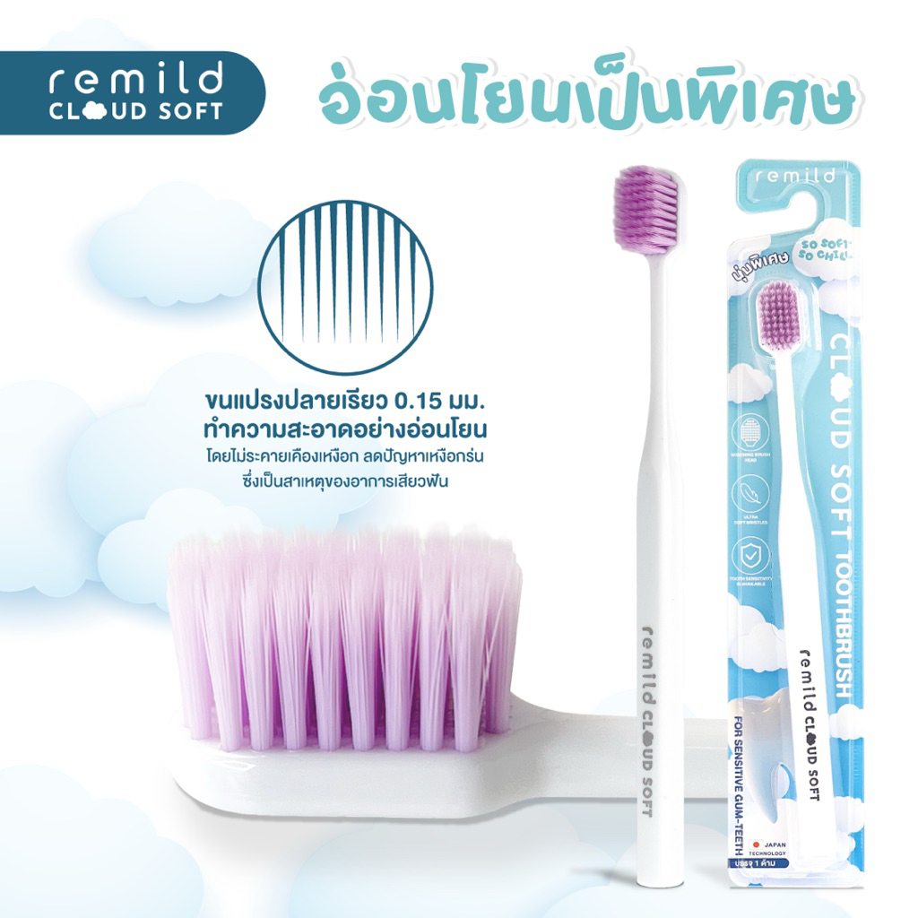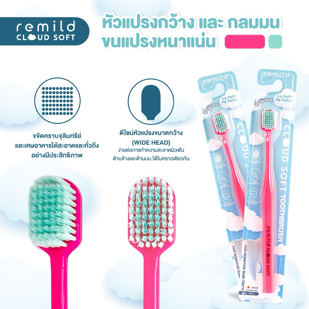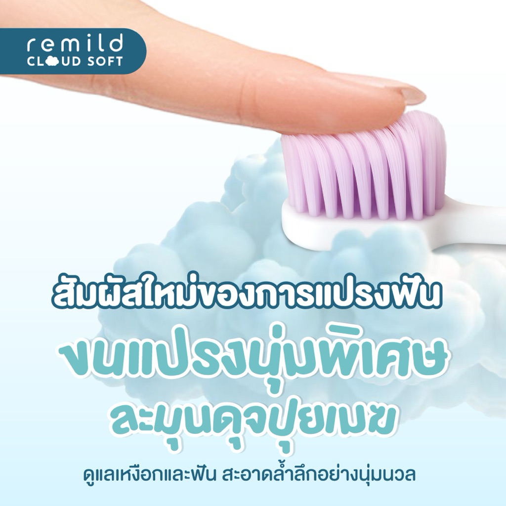 Remild cloud soft แปรงสีฟัน ขนนุ่มพิเศษ ไม่บาดเหงือก ป้องกันเหงือกร่น ลดเสียวฟัน ลดคอฟันสึก แปรงปุยเมฆ 1 ชิ้น มี 5 สี