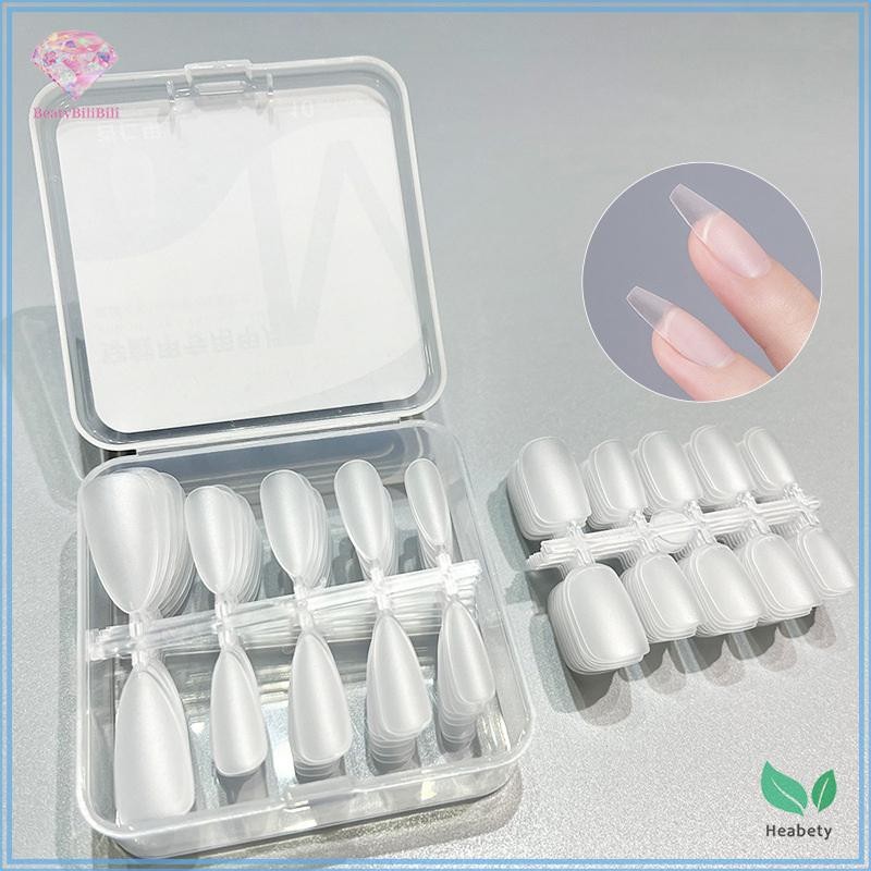 Heabty 100 ชิ้นสั้นอัลมอนด์ Frosted Clear เล็บปลอมเหมาะสําหรับการออกแบบเล็บและ Salon Extensions เหมาะสําหรับออกเดทและทุกวันสวมใส่ใหม่