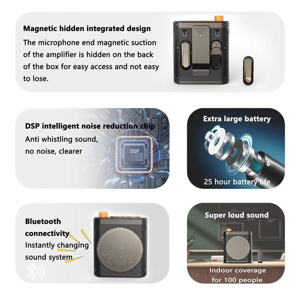 M29 ไร้สาย Lavalier ไมโครโฟนลําโพงบลูทูธ 5.0 แบบพกพาระบบ PA สําหรับการสอนท่องเที่ยว 15M ช่วง 8H แบตเตอรี่