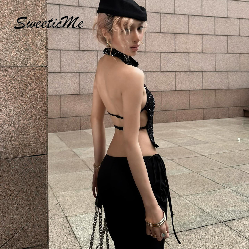 เสื้อสายเดี่ยวสตรี ลายจุดพร้อมเชือกแขวนคอ สไตล์เซ็กซี่