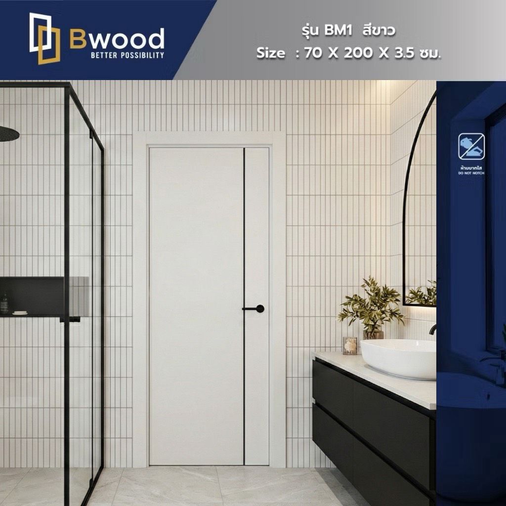 ส่งฟรี! | ประตู uPVC (รีดขึ้นรูปสำเร็จ) ห้องน้ำ ใช้ภายใน เจาะลูกบิด | Bwood BM | 70x200