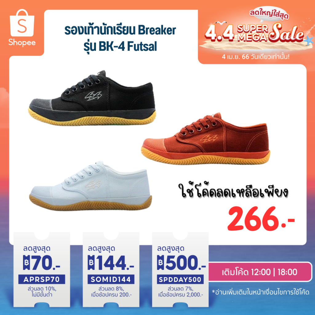 Breaker รุ่น BK-4 Futsal รองเท้านักเรียน สีขาว ดำ น้ำตาล รองเท้าผ้าใบ พร้อมส่ง ของแท้ 100% จากโรงงาน