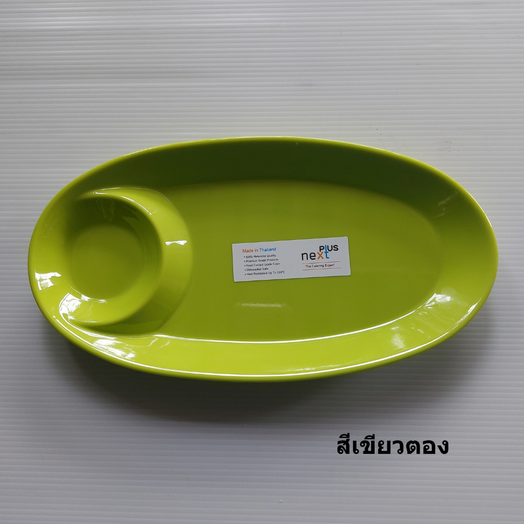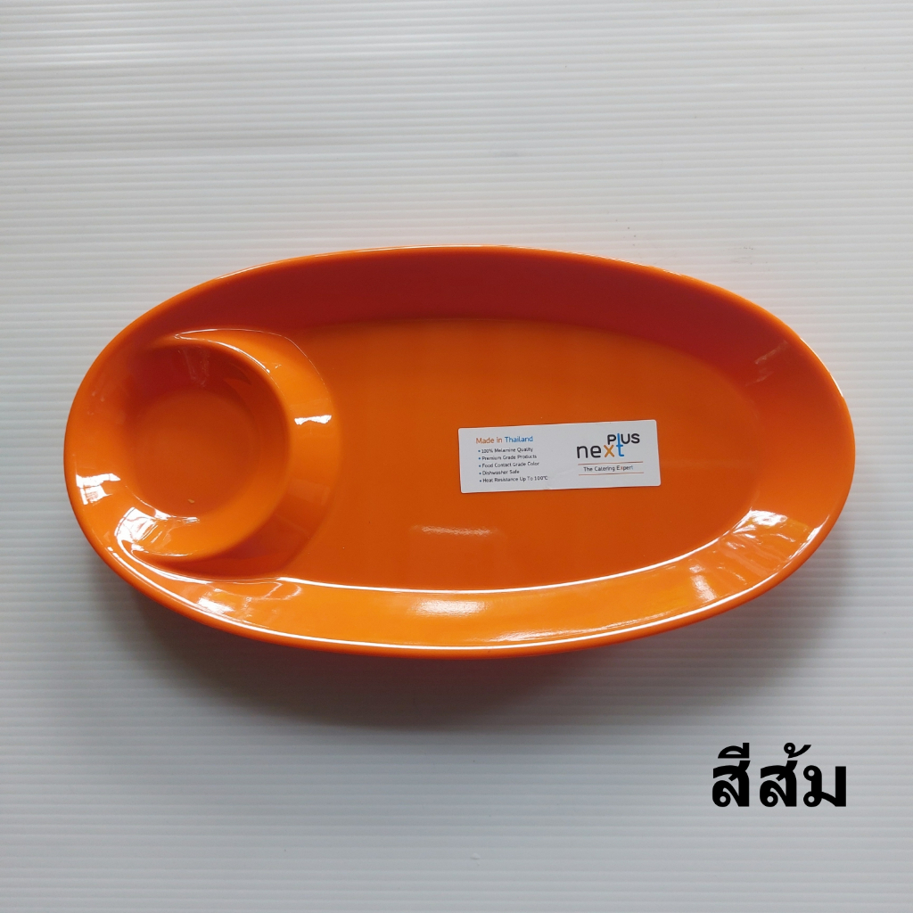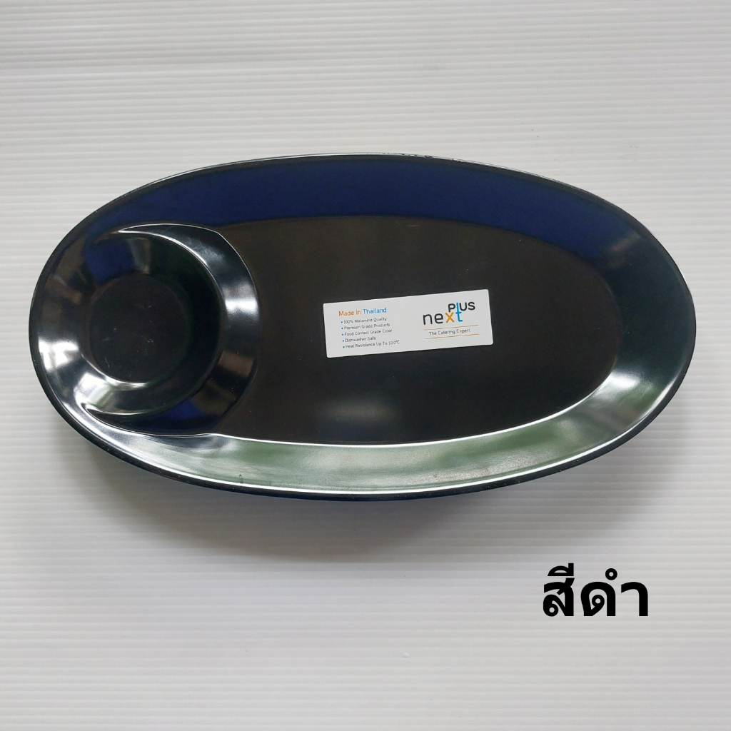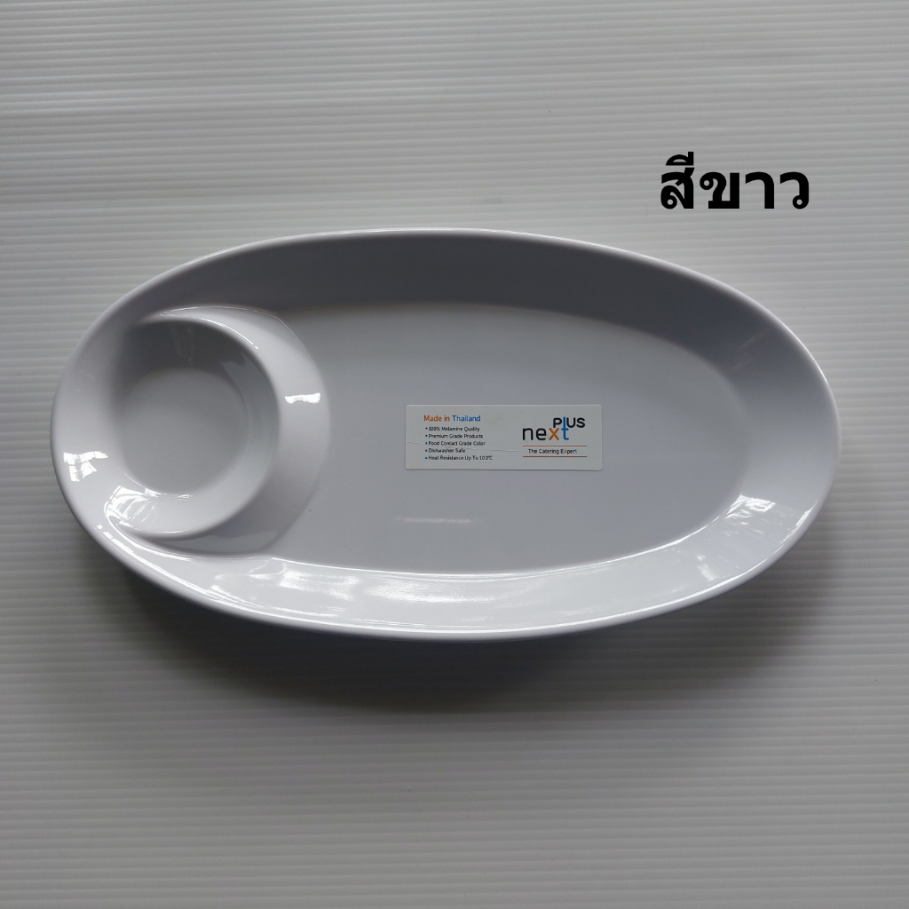 จานรูปวงรีถ้วยน้ำจิ้มในตัวเมลามีนแท้เนื้อหนาจากNextplus