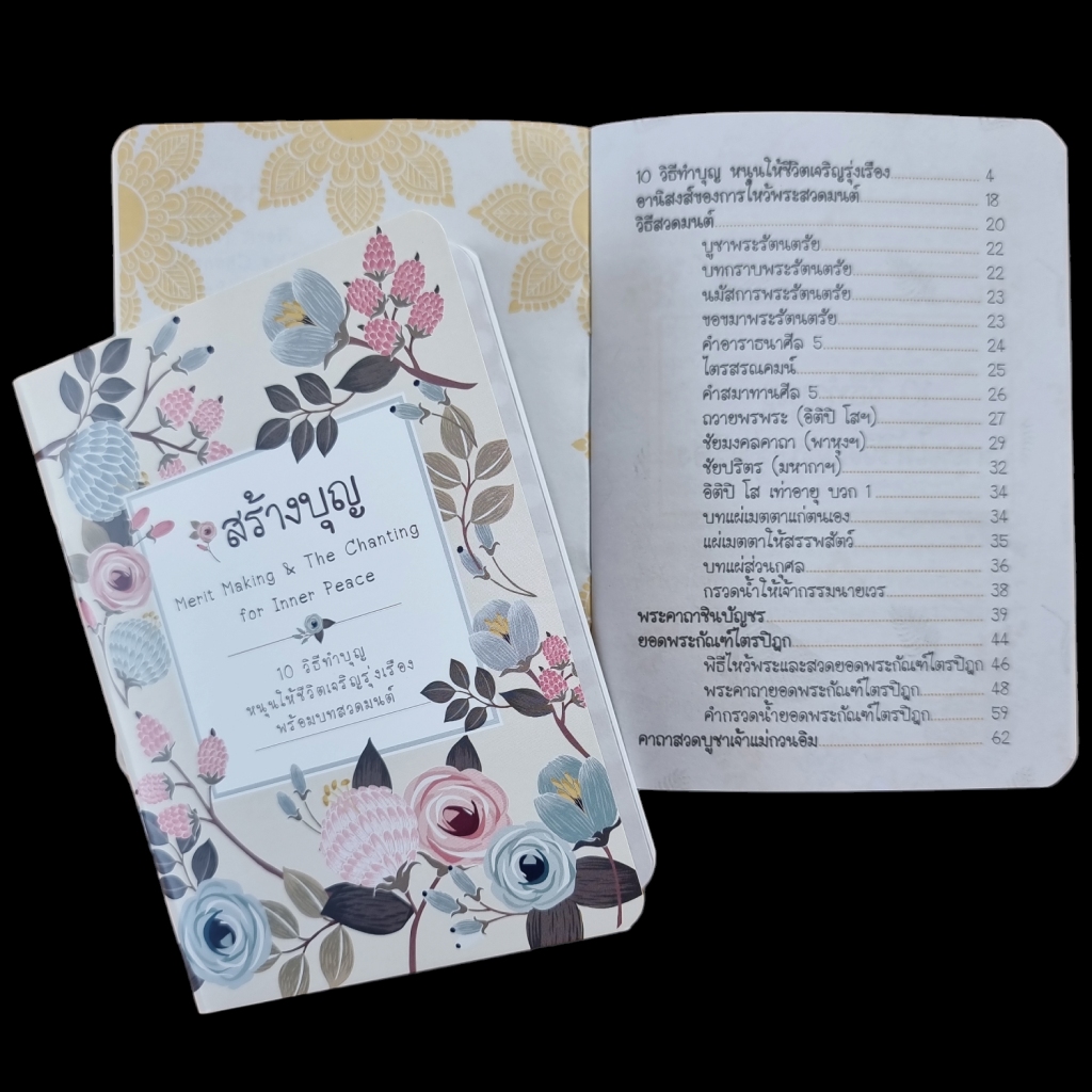 หนังสือสวดมนต์ สอดแทรกธรรมะ สร้างบุญ ขนาด A6 (แพ็ค 50 เล่ม)