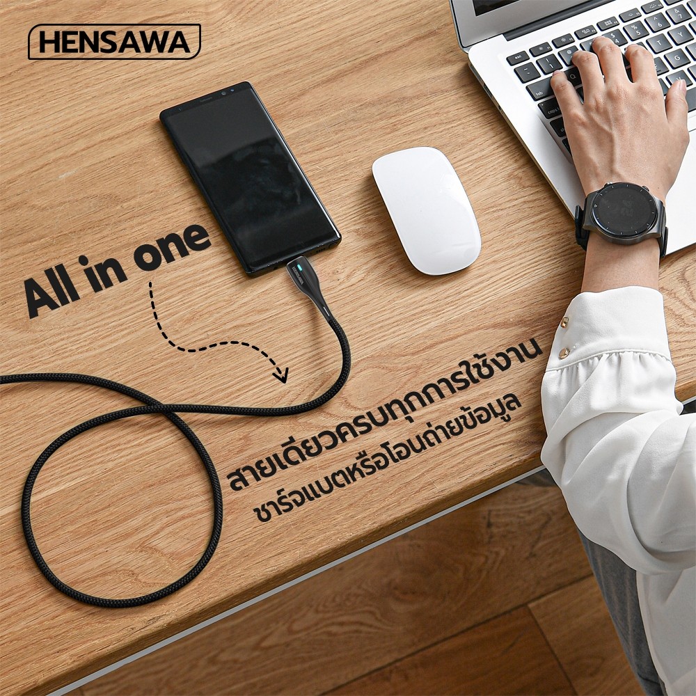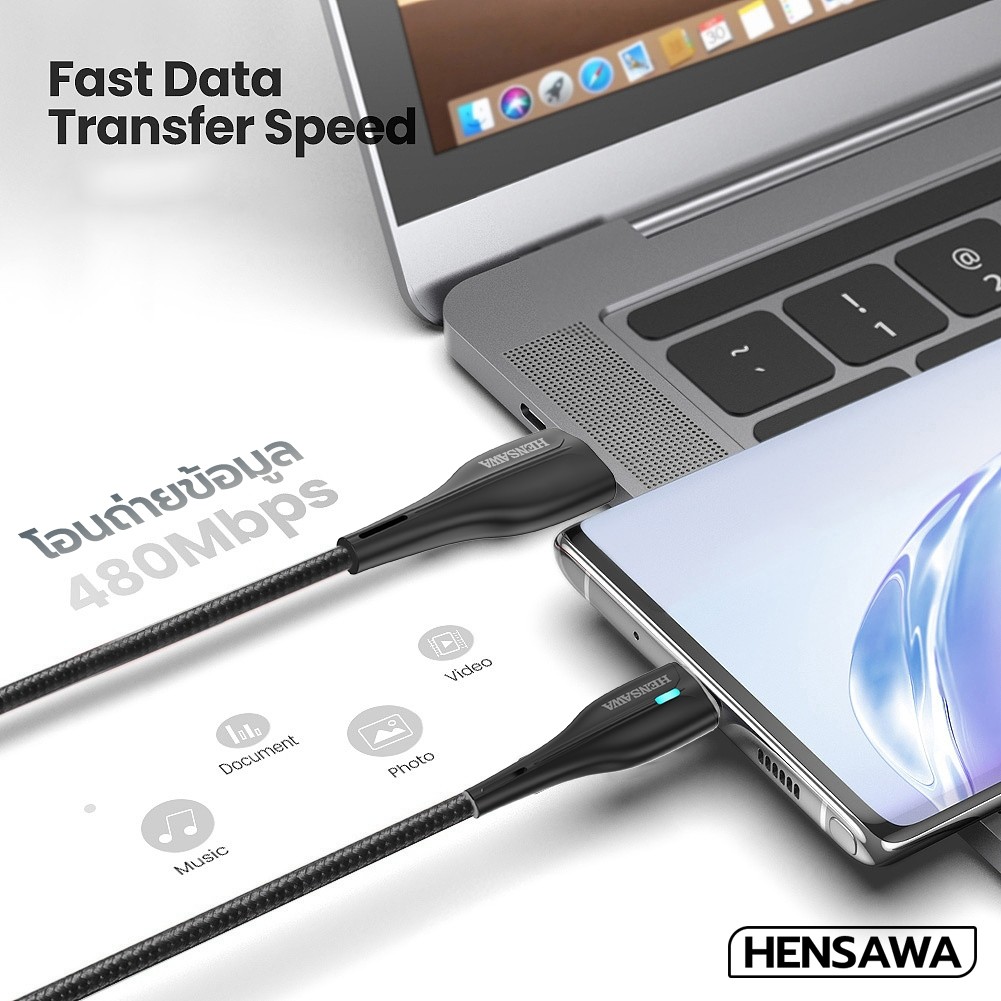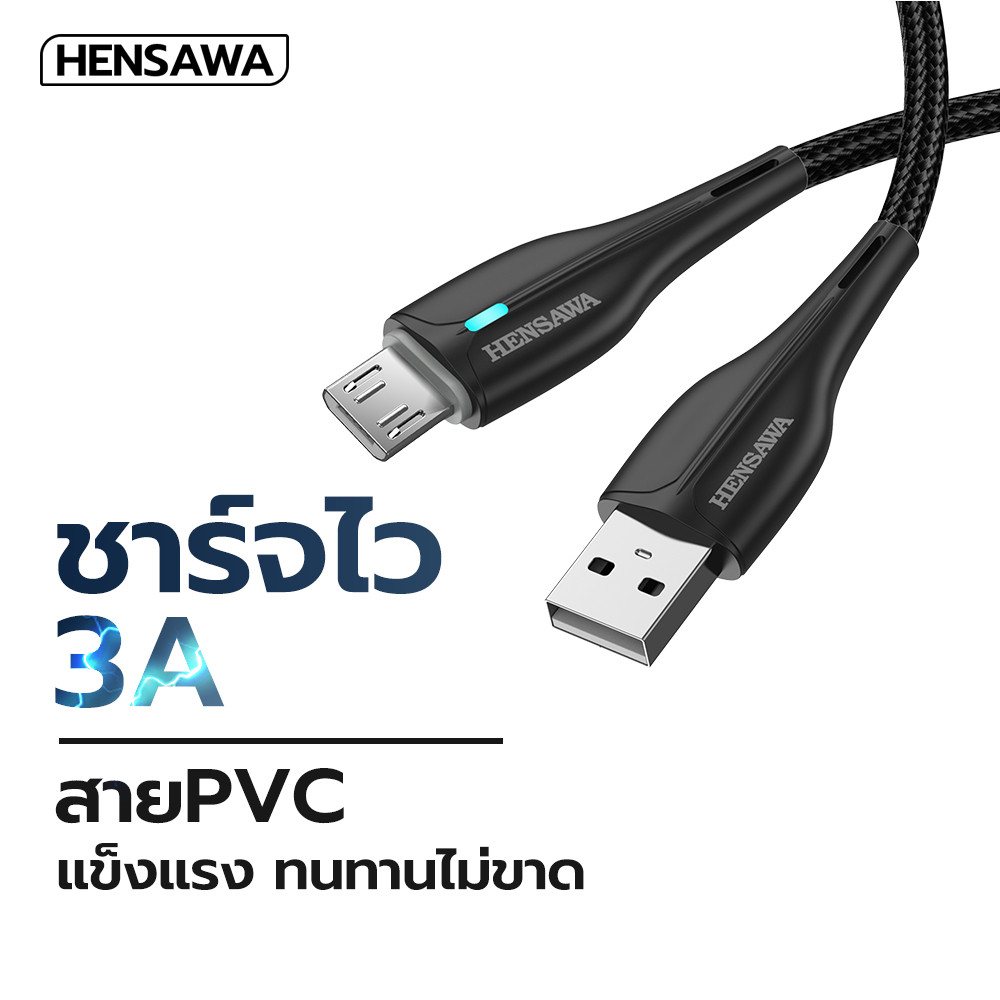 Hensawa สายชาร์จเร็ว 3A USB to Micro Type-c 1m หนาพิเศษ รุ่น US3098 สายPVC สีดำ 1 เมตร ทนทาน Fast Charge Cable & Sync