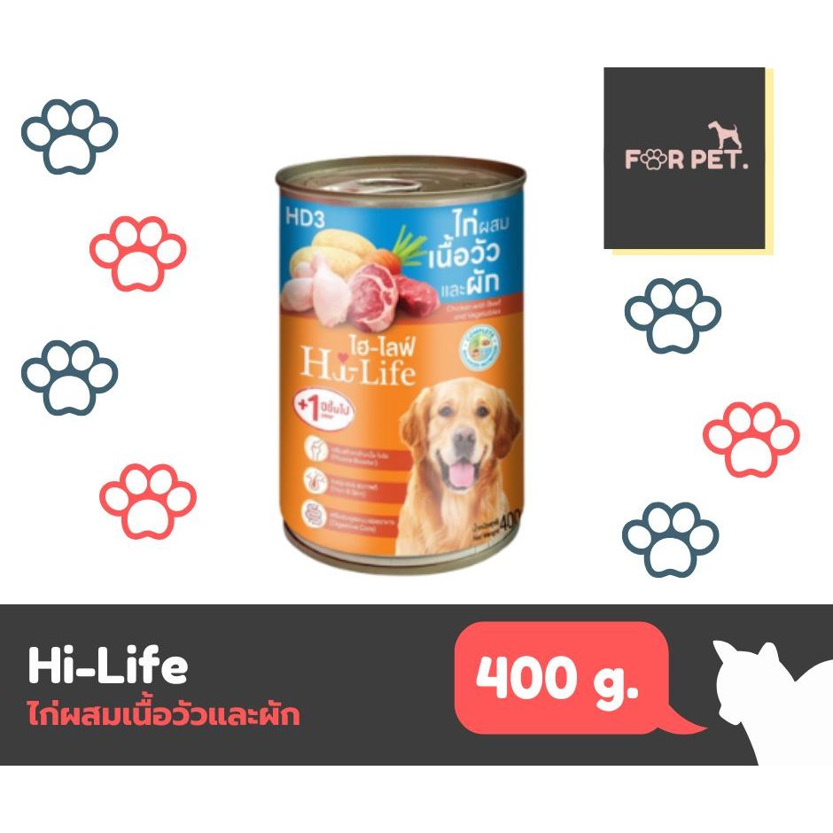 Hi-Life ไฮ-ไลฟ์ อาหารสุนัขเปียกกระป๋อง 400 g. x 12 (ยกลัง)