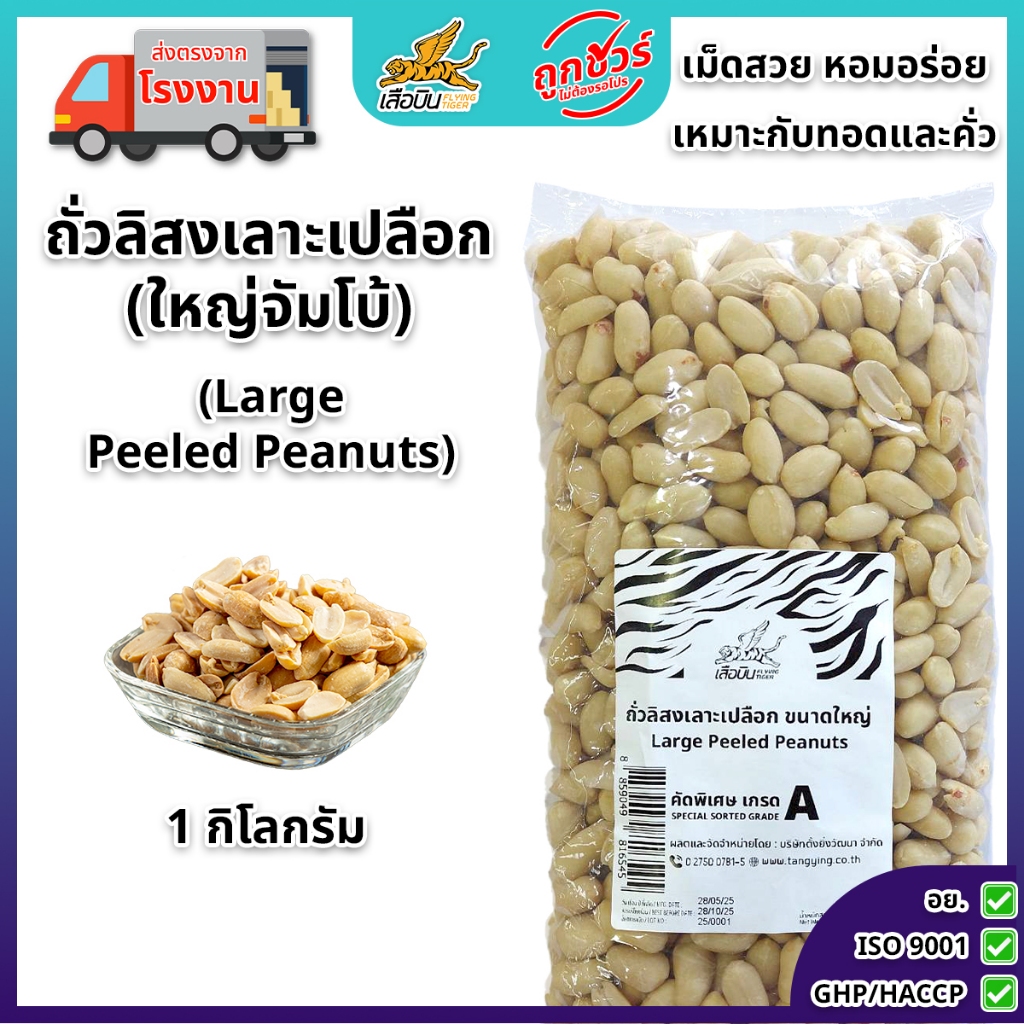 ถั่วลิสงดิบเลาะเปลือกขนาดใหญ่จัมโบ้ 1 กิโลกรัม ตราเสือบิน | Large Peeled Peanuts