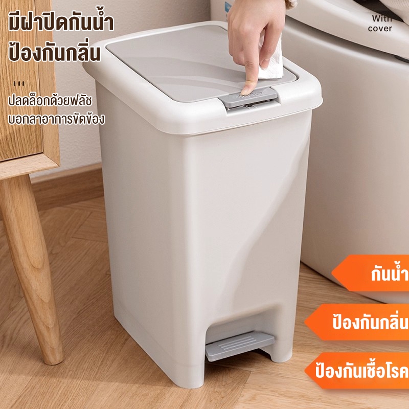 Living ถังขยะพลาสติก ใช้งาน2ระบบ กดเปิดมือ-เหยีบด้วยเท้า ถังขยะเหยียบ พลาสติกเหนียว กันกลิ่นดี