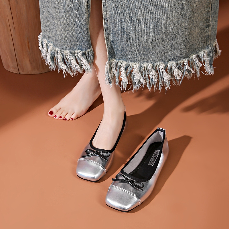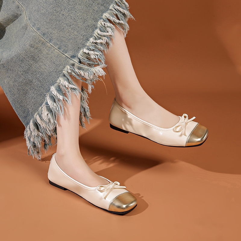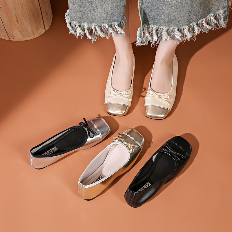 Atikota รองเท้าแบนผู้หญิง ปากตื้น รองเท้าโบว์อารมณ์สง่างาม