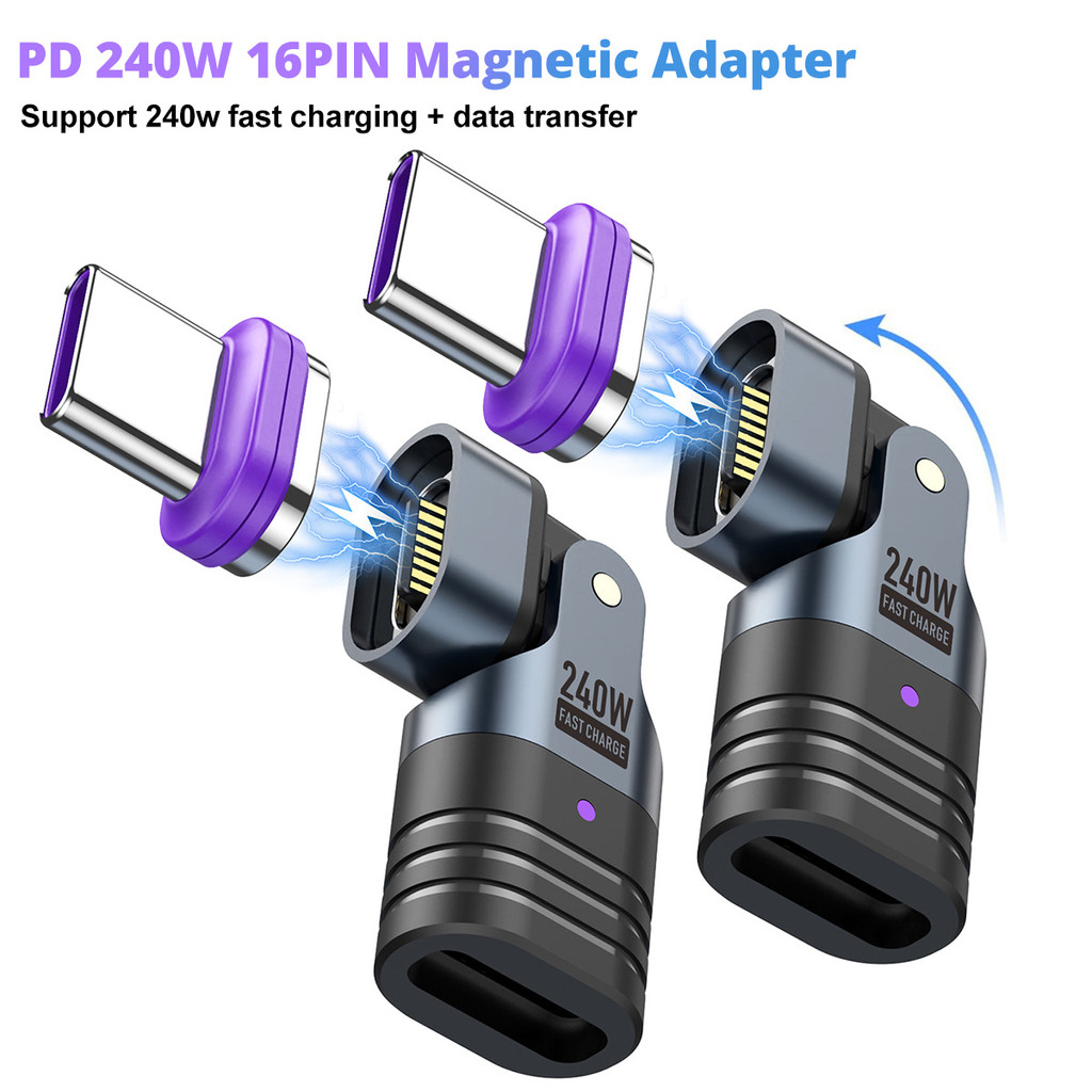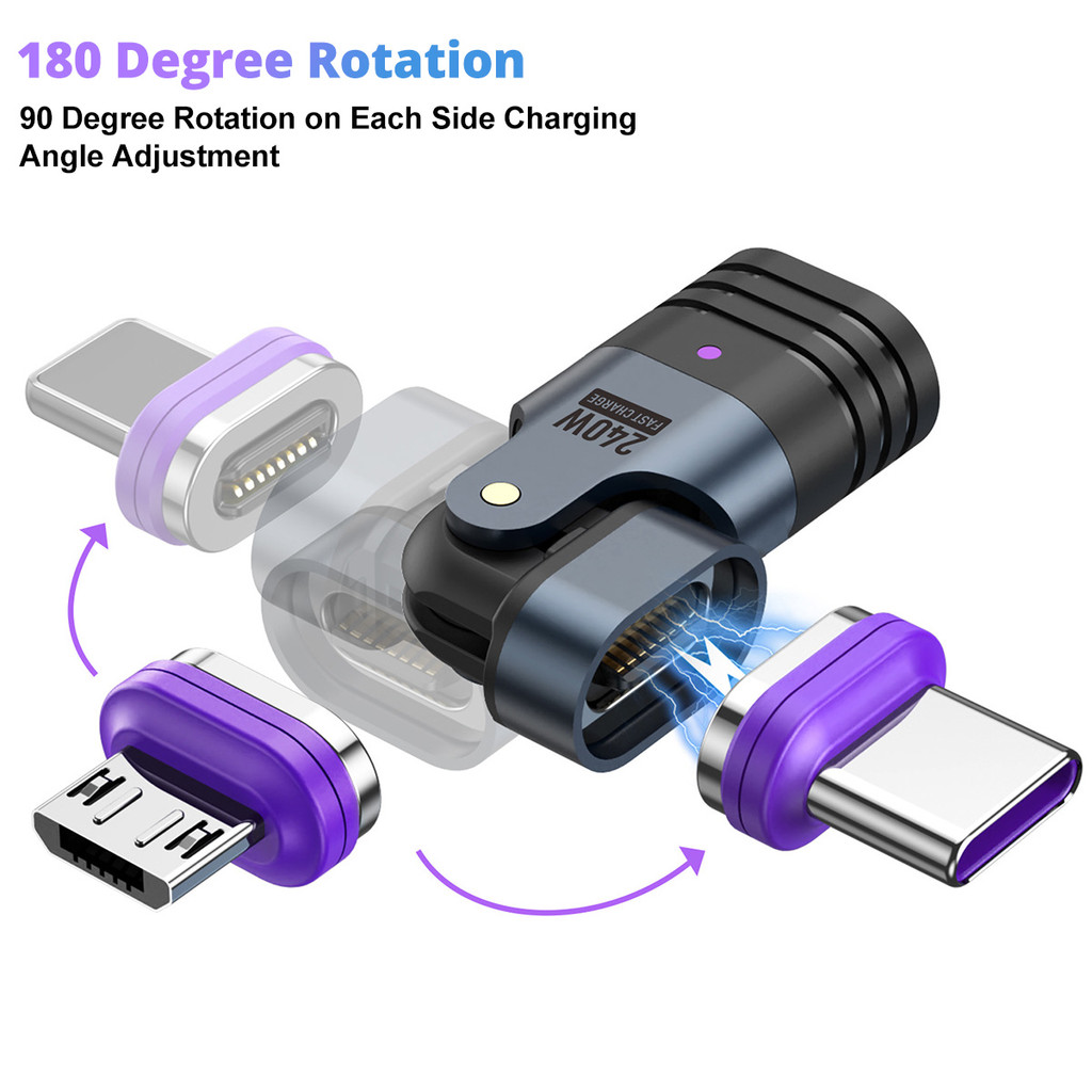 Fonken PD240W USB C อะแดปเตอร์แม่เหล็กถึง 16Pin Type-C Micro USB iOS ชาย 180° ตัวแปลงข้อมูลการหมุน