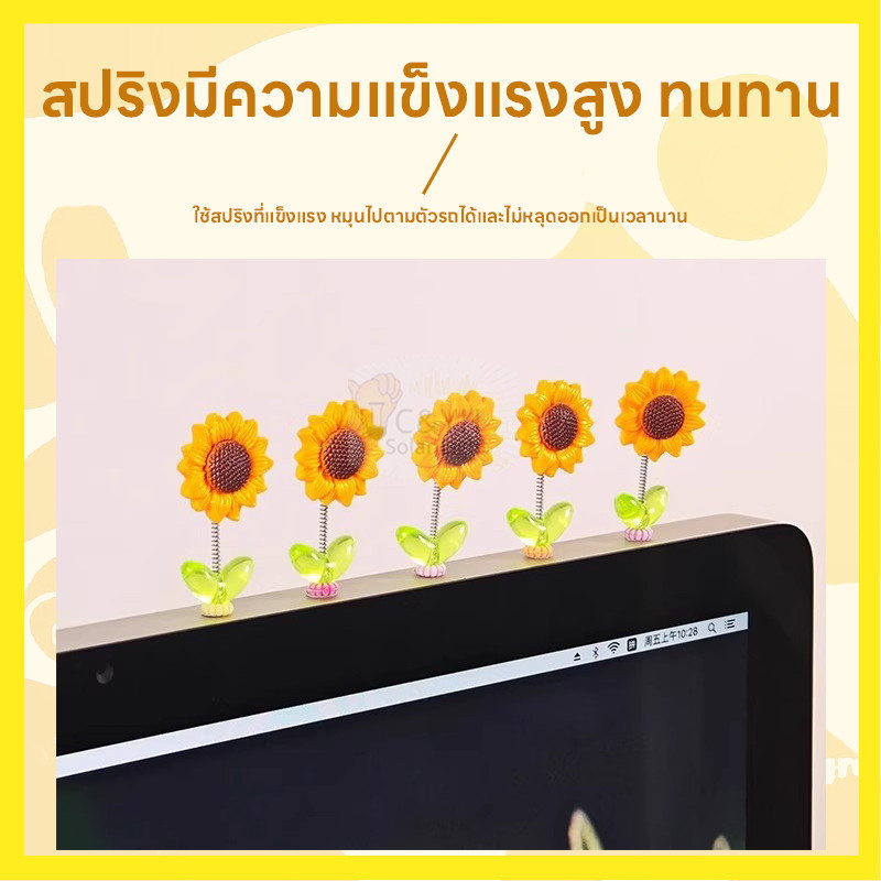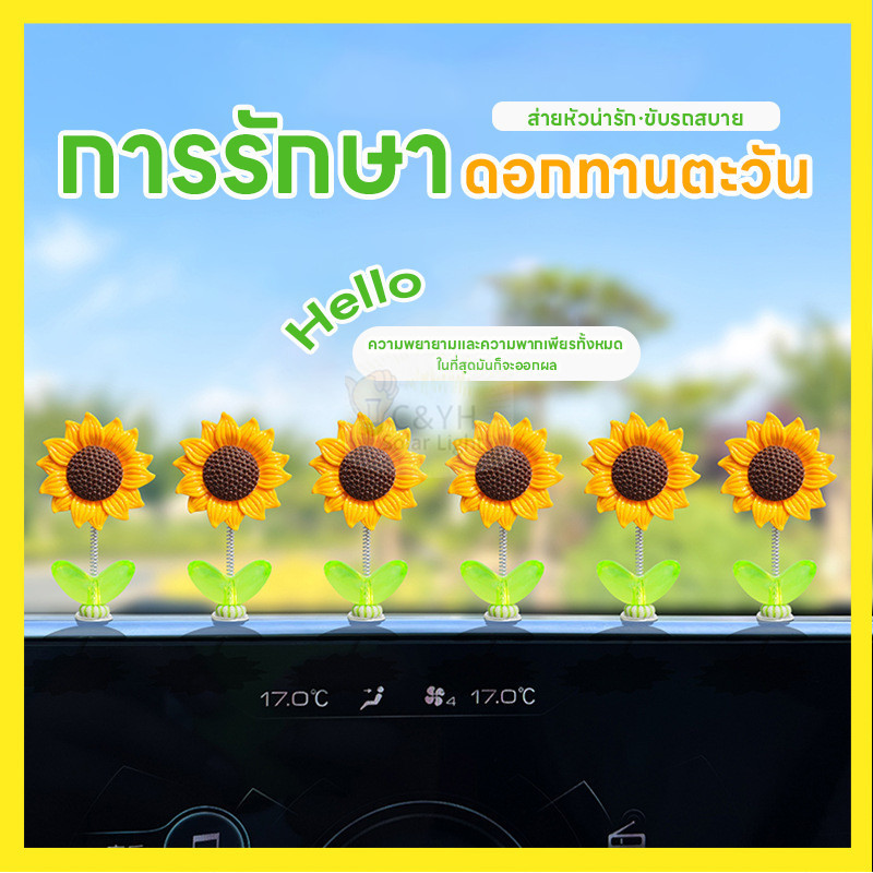 ตกแต่งคอนโซล ของตกแต่งในรถยนต์ DIY ที่สร้างสรรค์ 5ชิ้น เซ็ตดอกทานตะวันเขย่าหัวของเล่น ทานตะวันติดรถ