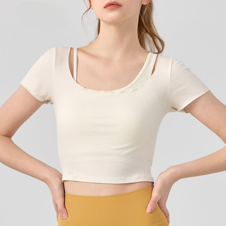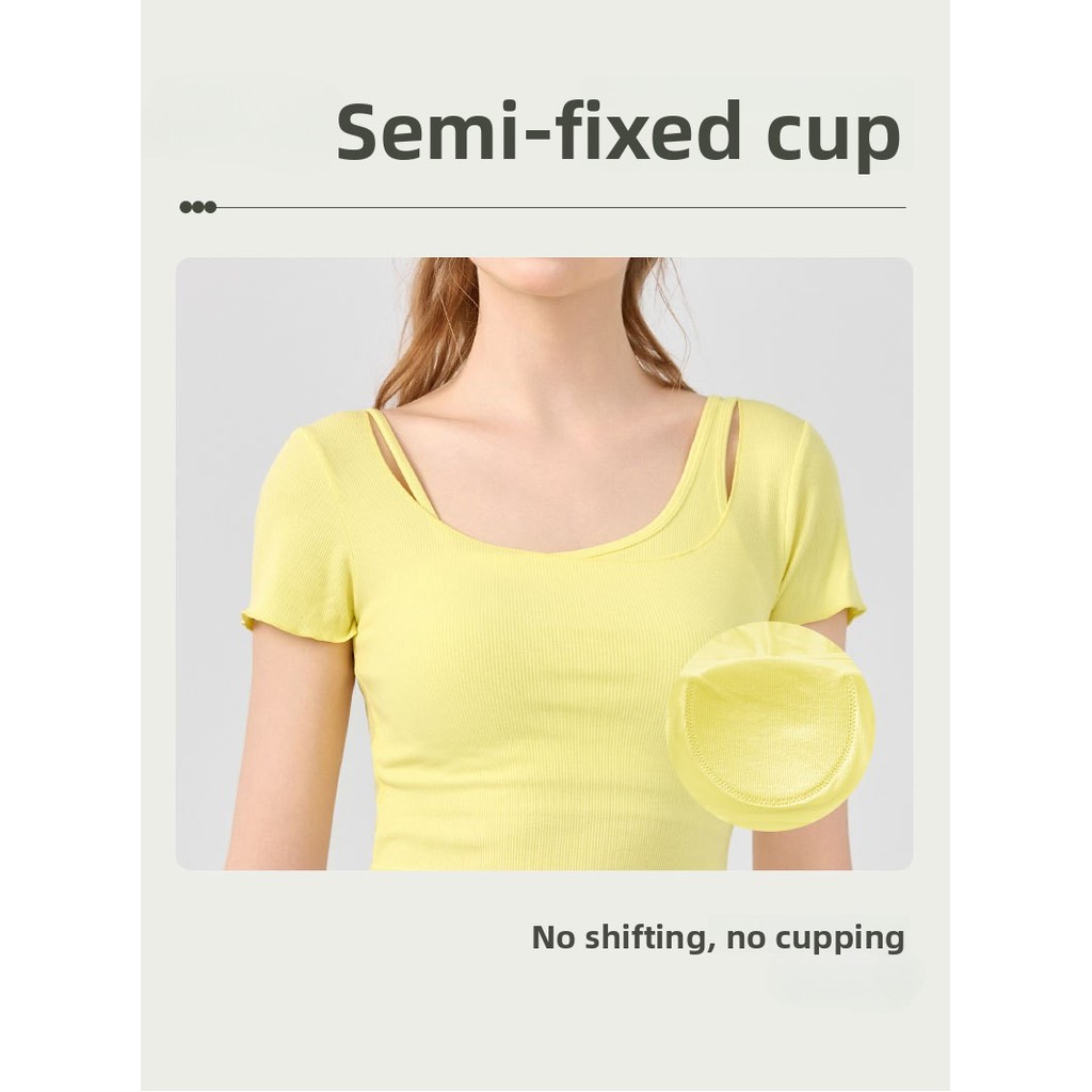 AirActive Leisure Casual Yoga Sports T-shirt Cropped Top Fixed Pads 2 In 1 Design Fine Ribbed Breathable