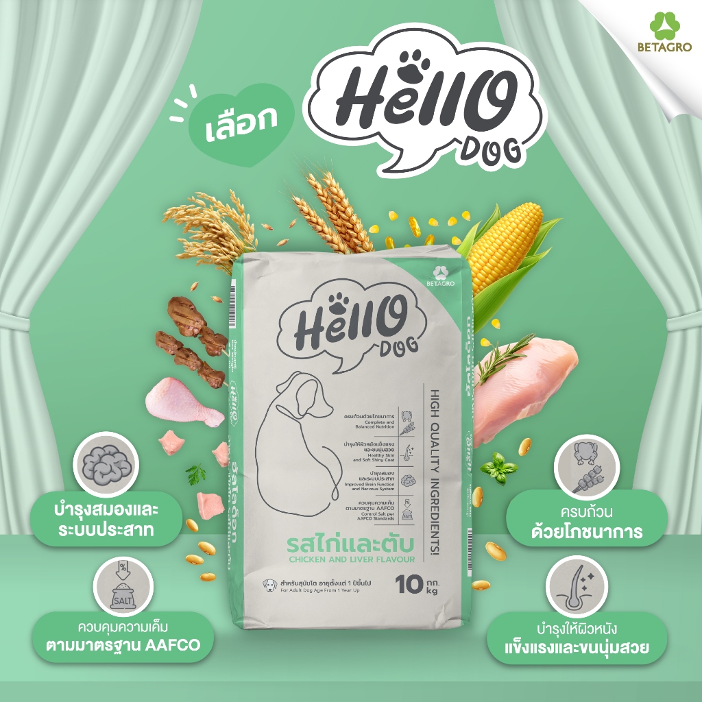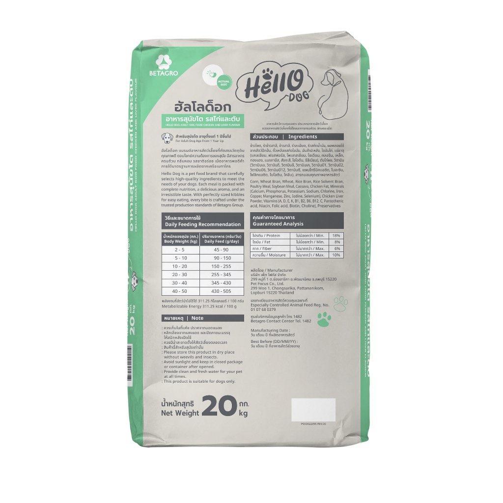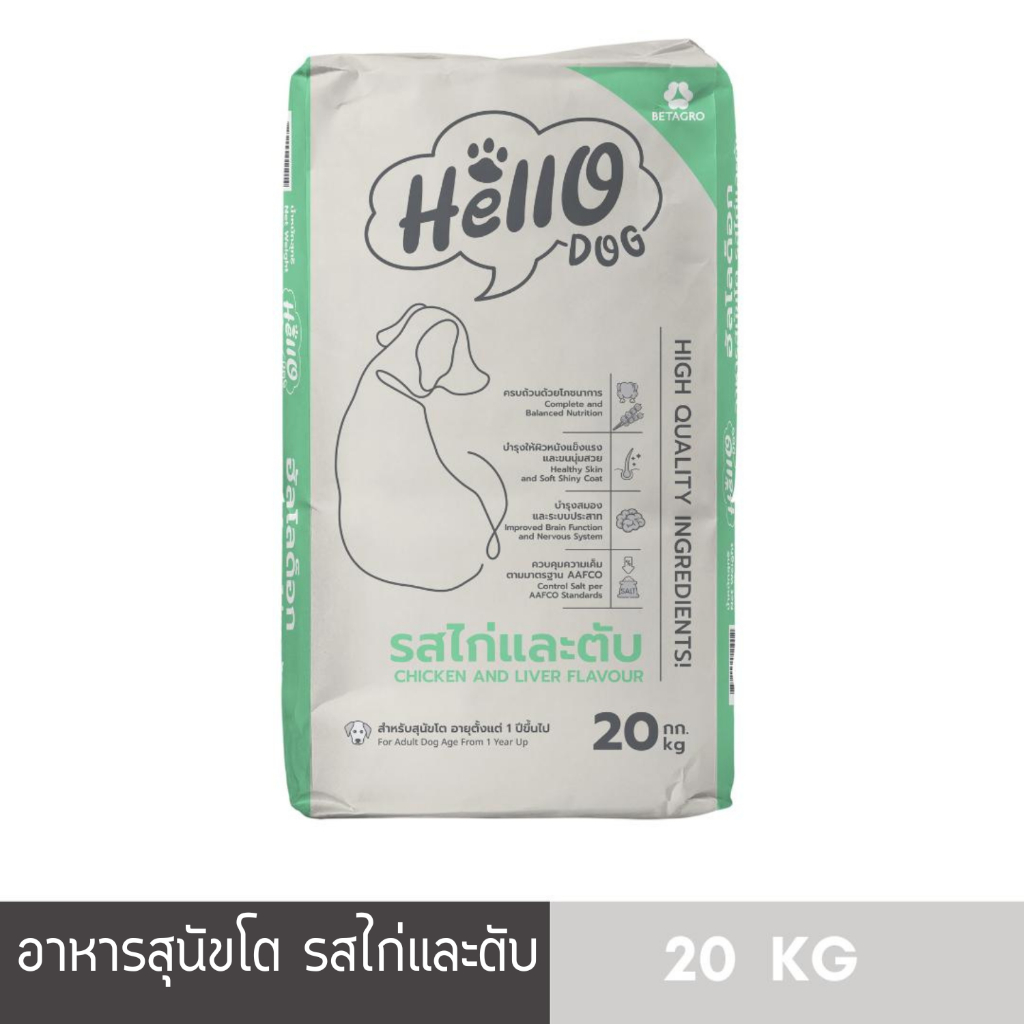 Hello Dog (ฮัลโล ด็อก) อาหารสุนัขโต รสไก่เเละตับ 20 kg